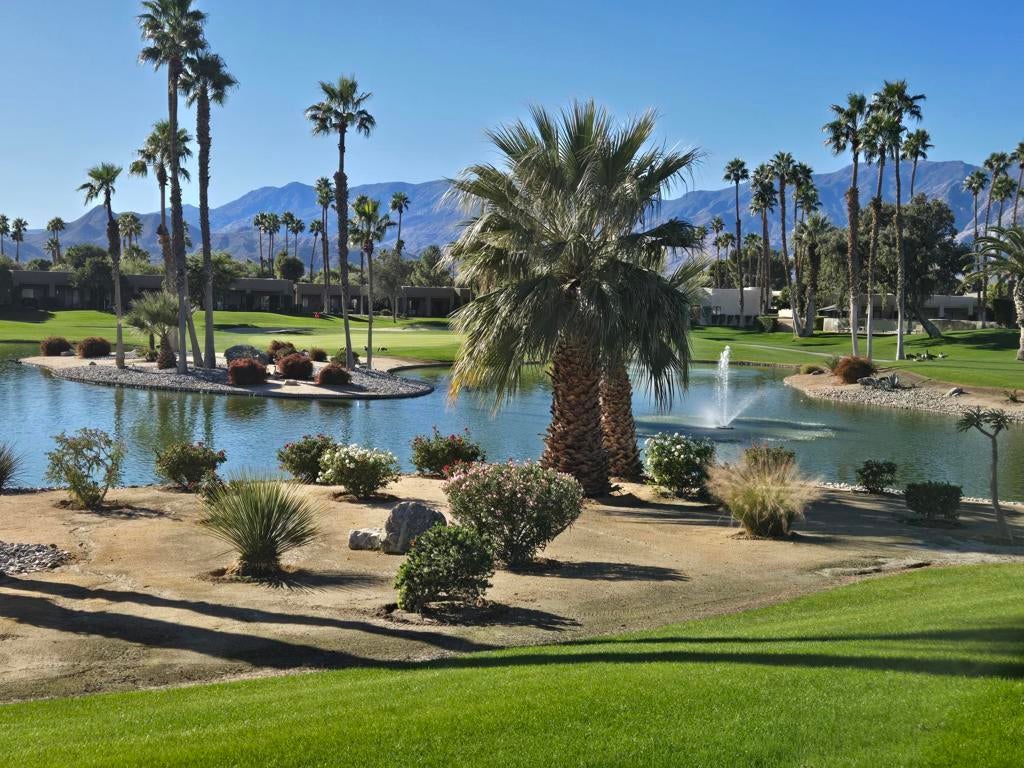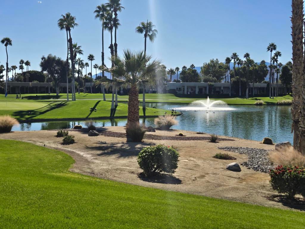 WOW! Amazing views South to mountains, ponds, 3 fountains, and Lagos 3 fairway and green. Upgraded appliances. Freshly painted. Single-car detached garage. Gated community. The Desert Princess has an affordable 27-hole PGA Championship golf course, no Tee-time lotteries, no initiation fees, rated among the best in the valley by GOLF DIGEST. This quiet community is away from the noise yet minutes from everything that is in Palm Springs; restaurants, shopping, casinos, an international airport, the Tramway, Art Museum, Theaters, and the Street fair.Restaurant on site. Health and fitness center on site.