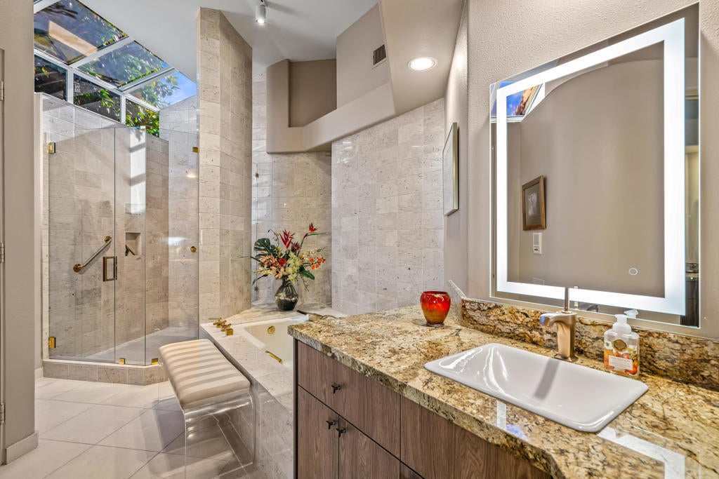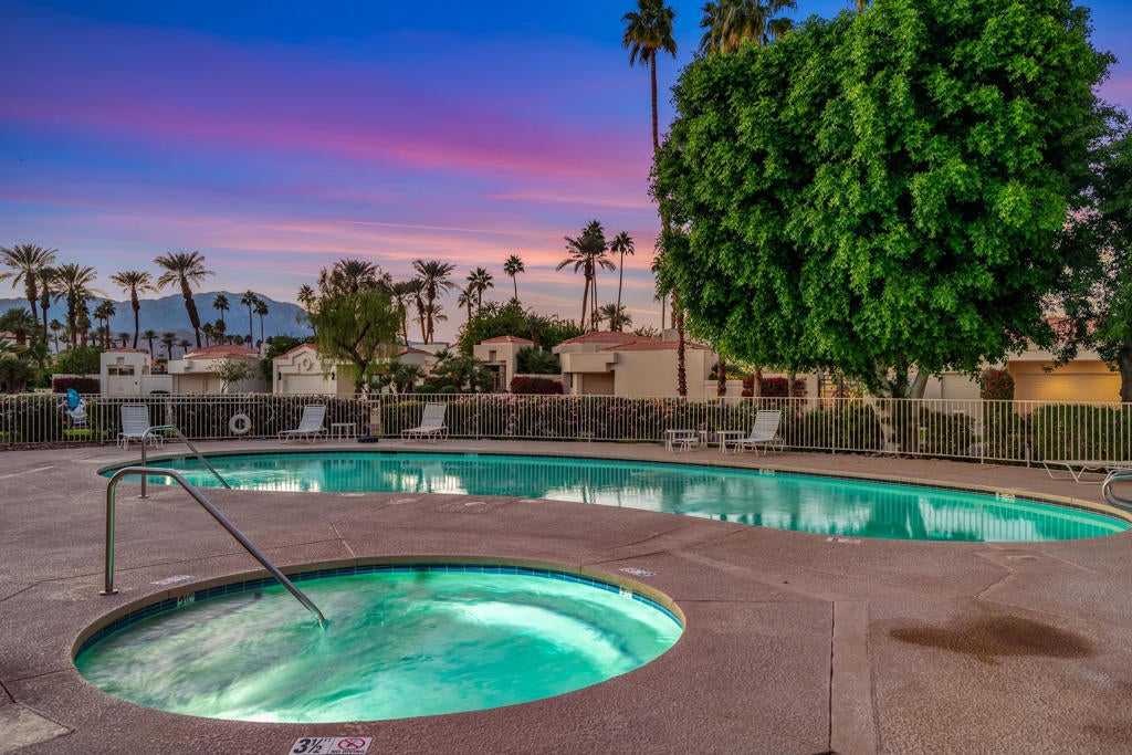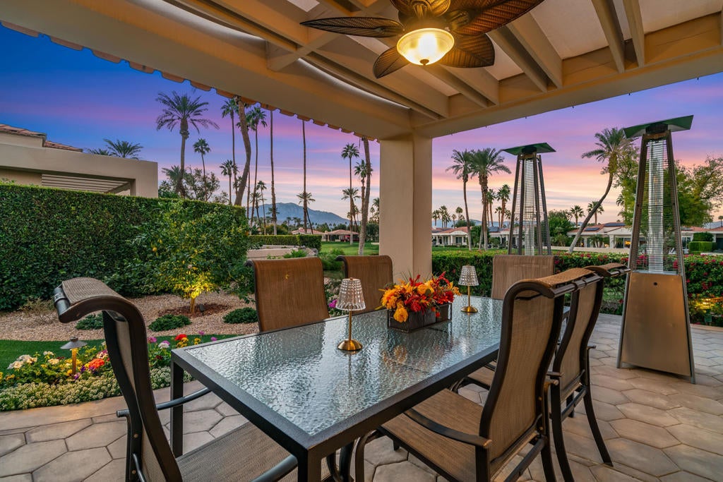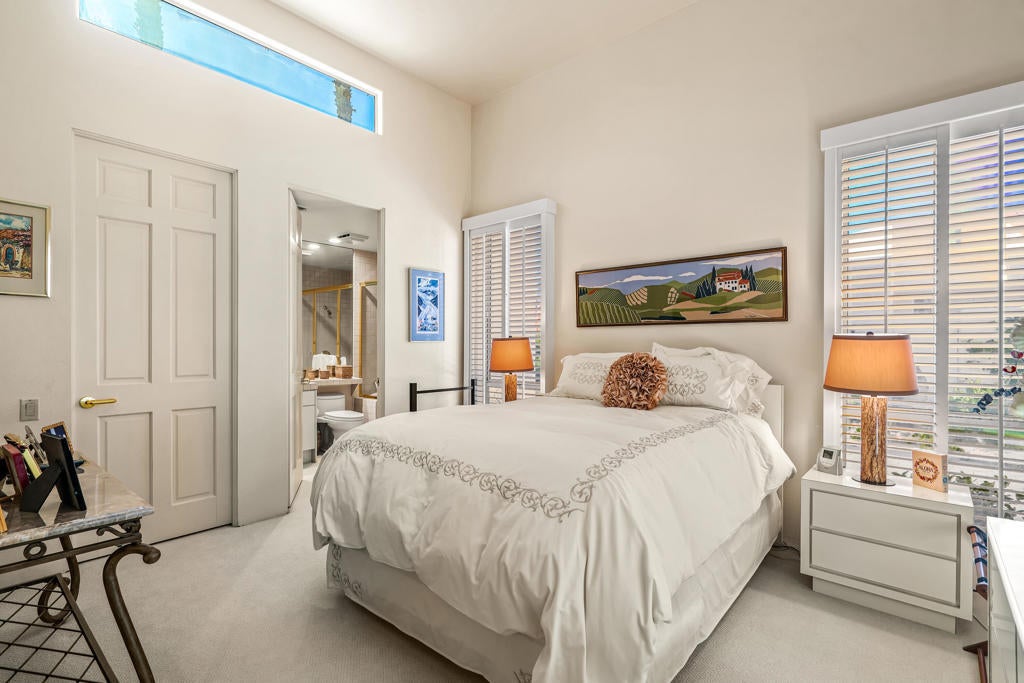Welcome to a private home located in Desert Horizons County Club in Indian Wells. This beautiful free-standing Winged Foot floor plan has 2,855 sq. feet with two en-suite bedrooms, den/office plus a bonus room being used as a game room. This special elevated lot is on the 12th fairway, on a cul-de-sac and steps from a community pool. Professionally landscaped lot features extensive desert scape, private fountain and wrap around patio spaces. The Country Club has been totally remodeled and has a state of the art workout facility, additionally the pickle ball and tennis courts have been redone to include a pavilion. There is something for everyone.