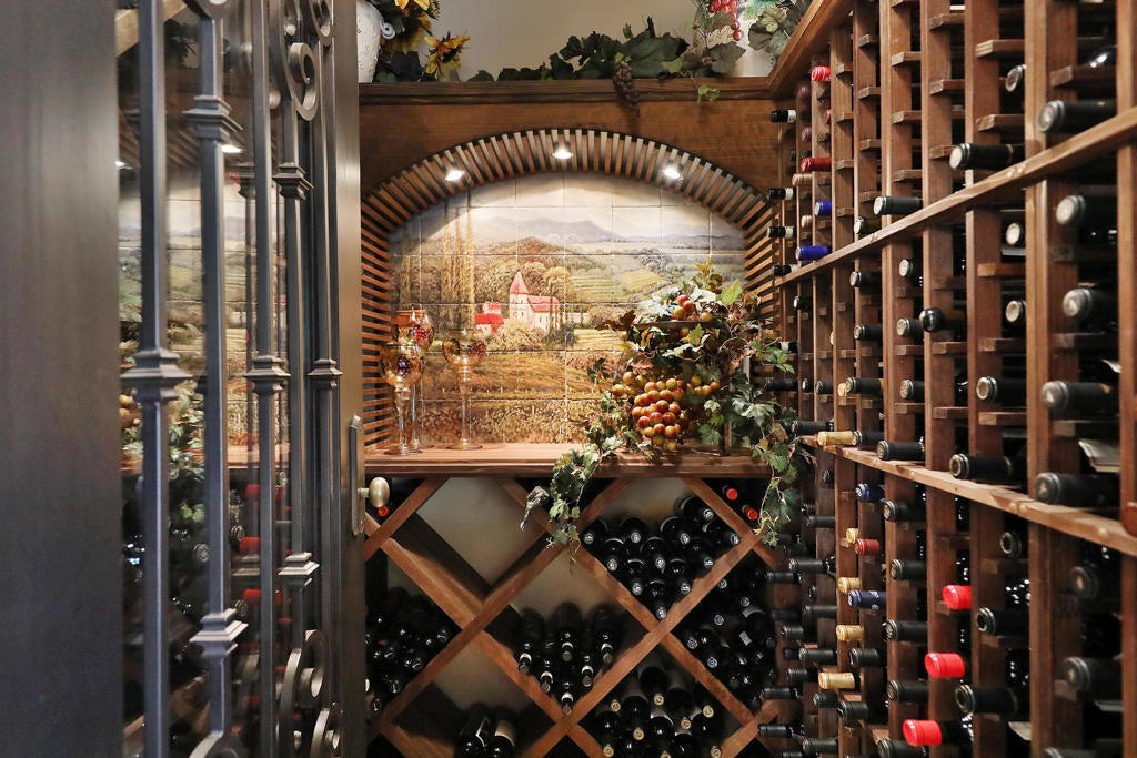 Beamed Ceilings, Breakfast Bar, Breakfast Area, Crown Molding, Separate/Formal Dining Room, High Ceilings, Open Floorplan, Storage, Main Level Primary, Primary Suite, Walk-In Pantry, Walk-In Closet(s), Bar, Smart Home, Wine Cellar