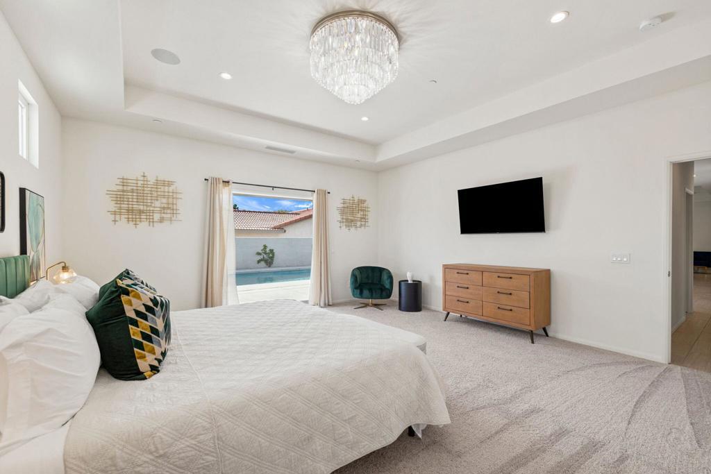 Centrally located in Bermuda Dunes, this single-family home is set on an expansive lot and features paid solar, a flexible open floor plan, and tasteful modern upgrades throughout. The main living areas extend seamlessly to a covered patio and lush outdoor space, creating an inviting setting for entertaining or quiet enjoyment at home. The outdoor living area serves as a true oasis, showcasing a newer pool and an attractive lawn area, all situated behind the wall for added privacy and comfort. The primary suite offers a private retreat with a soaker tub, walk-in shower, and generous closet space. Interiors are filled with natural light and finished with clean, contemporary details, complemented by ample storage. The epoxy-coated three-car garage provides durable, low-maintenance flooring, with the option to convert the third car garage into a fourth bedroom, home office, or fitness room. A large RV-size gate offers secure parking for recreational vehicles or additional equipment. Conveniently positioned near schools, shopping, and local amenities, this move-in-ready home delivers comfort, versatility, and a desirable Bermuda Dunes address.