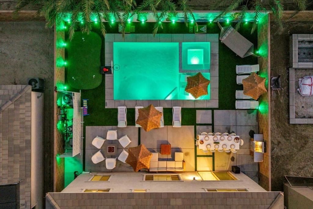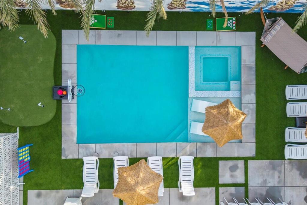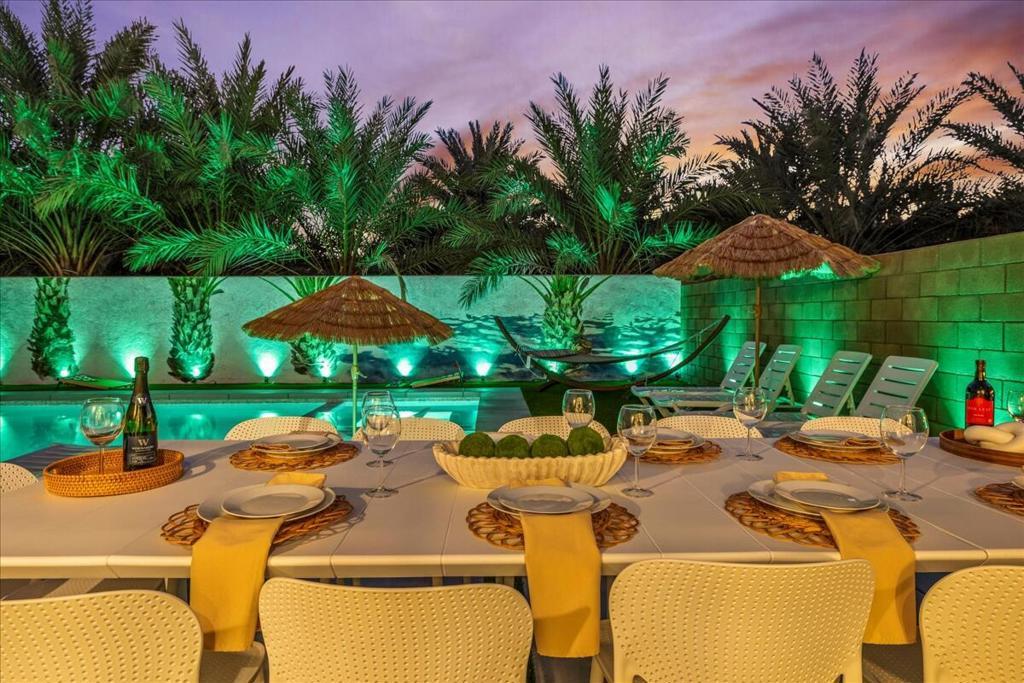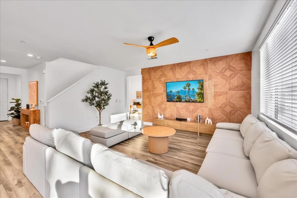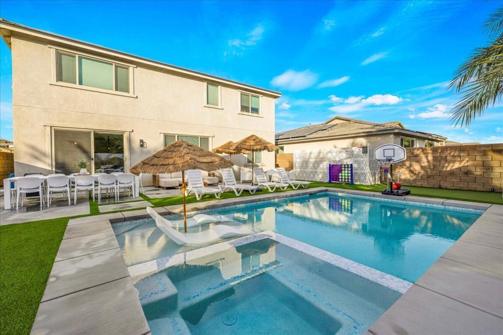 Property permits short-term rentals with a minimum stay of 30 days. Rental rates are subject to change based on seasonality and local events. Stunning brand new 2025 construction offered fully furnished and designed for modern resort style living. This turnkey home features an open concept layout filled with natural light, wide plank flooring, recessed lighting, and stylish designer finishes throughout. The contemporary kitchen showcases sleek cabinetry, stainless steel appliances, a gas cooktop with modern hood, expansive countertops, and a large island that flows seamlessly into the dining and living areas, perfect for entertaining. The living room is highlighted by a custom accent wall and thoughtfully curated furnishings included with the sale. Step outside to a private backyard oasis featuring a brand new saltwater pool and spa, surrounded by modern hardscape, artificial turf, lush palm-lined privacy, and dramatic landscape lighting for evening ambiance. The outdoor space is ideal for entertaining and relaxation, offering multiple lounge areas, outdoor dining, bbq ,a fire pit, putting green, recreational game areas, and basketball hoop. Additional highlights include solar panels for energy efficiency, all new systems, a game ready garage space, and an indoor laundry room with two washer's and two dryer's included. With low maintenance landscaping and every detail carefully designed, this home is truly move in ready and ideal as a primary residence, second home, or investment opportunity. A rare chance to own a fully furnished, new construction home with a saltwater pool that shows beautifully and delivers effortless luxury living.