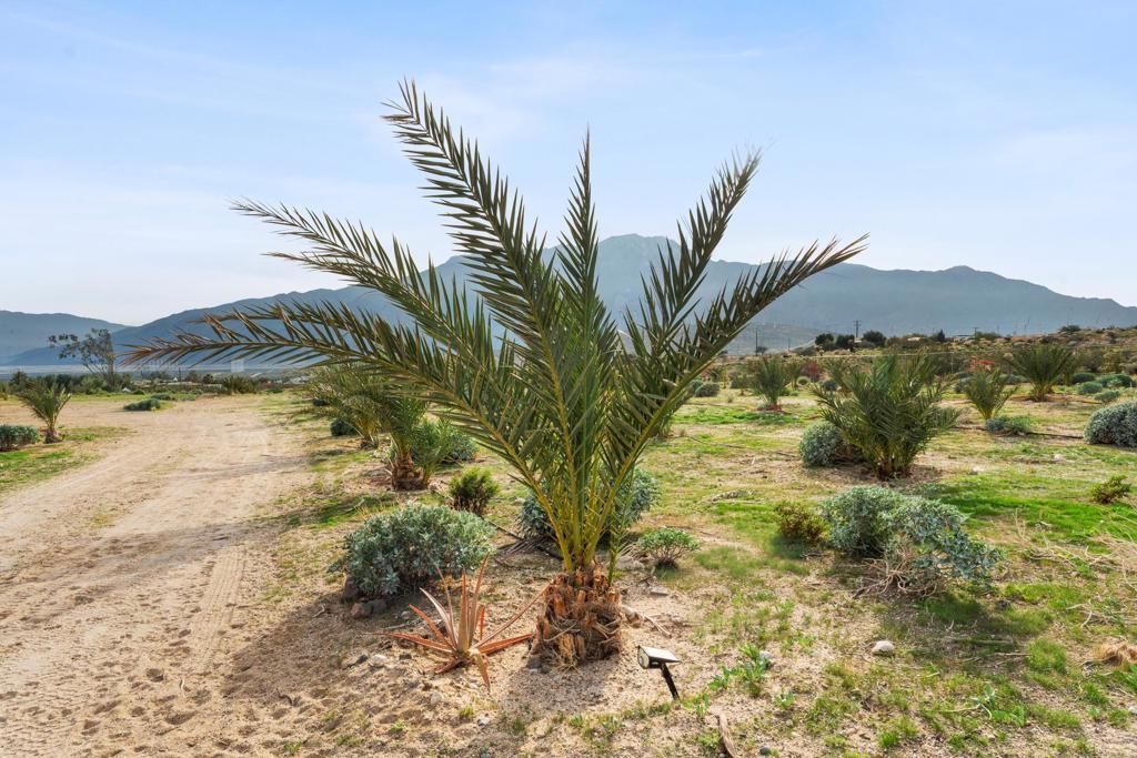 Rare opportunity to own approximately 2.5 acres of usable vacant land in Whitewater, CA, offering wide-open desert views and a peaceful, private setting. The property is fully fenced and features approximately 240 date palm trees planted throughout the parcel. The palms are young and not yet producing dates, but they are established date palm trees that add long-term agricultural and aesthetic potential.Water is already connected on the property, and power lines are located nearby, allowing a future owner to explore adding electrical service (buyer to verify availability and costs). The land's layout and open space make it well suited for a variety of uses, including a private retreat, agricultural use, nursery operation, or long-term investment hold.One image included in the marketing materials is an AI-generated conceptual rendering showing a potential retreat-style improvement for visualization purposes only. No structures currently exist on the property, and the image does not represent approved plans or existing improvements.Enjoy scenic mountain views, surrounding desert landscape, and proximity to the wind farm area while maintaining privacy and open space. Buyer to verify zoning, land use, utilities, access, and development feasibility to their satisfaction.