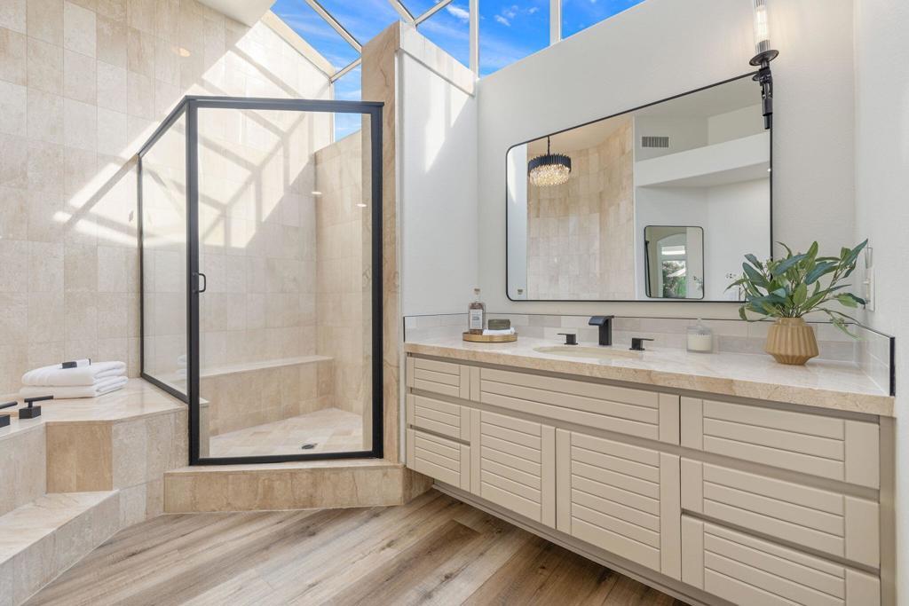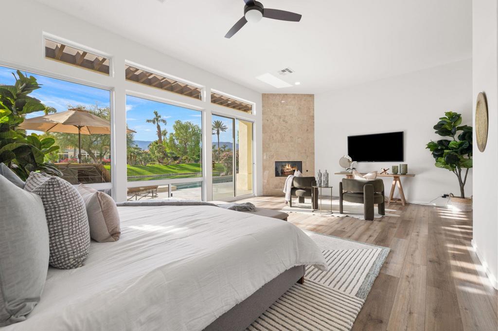 Set on an expansive, private lot within the gates of prestigious Desert Horizons Country Club, this beautifully updated residence offers refined desert living with gorgeous south-facing mountain, waterfall, and lake views. Spanning over 3,600 square feet, this 4-bedroom, 5-bath single-level home features an open-concept layout designed for both comfortable daily living and effortless entertaining.Recent updates include fresh interior paint throughout, enhancing the home's light, bright, and inviting feel. The spacious living areas are complemented by multiple fireplaces, generous ceiling heights, and seamless indoor-outdoor flow. The gourmet kitchen offers ample cabinetry, granite countertops, and stainless steel appliances, opening naturally to the main living and dining spaces.The primary suite serves as a private retreat with spa-inspired bathroom and walk-in closet, while each guest bedroom offers en-suite accommodations for comfort and privacy. Step outside to a tranquil backyard oasis featuring a private pool and spa, expansive patio areas, and captivating views of the lake, waterfall, and surrounding mountains--ideal for entertaining or relaxing under the desert sky.Residents enjoy access to the newly completed Desert Horizons clubhouse, featuring a full-service restaurant and bar, an 8,000-square-foot fitness and wellness center, pro shop, and a state-of-the-art courts pavilion with pickleball and tennis courts. Located in the City of Indian Wells, homeowners also benefit from exclusive resident privileges, including discounted golf, dining, spa, and fitness amenities.This is a rare opportunity to enjoy space, privacy, views, and lifestyle in one of Indian Wells' most sought-after communities.