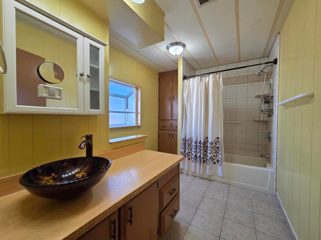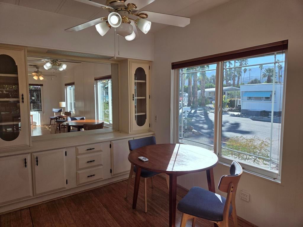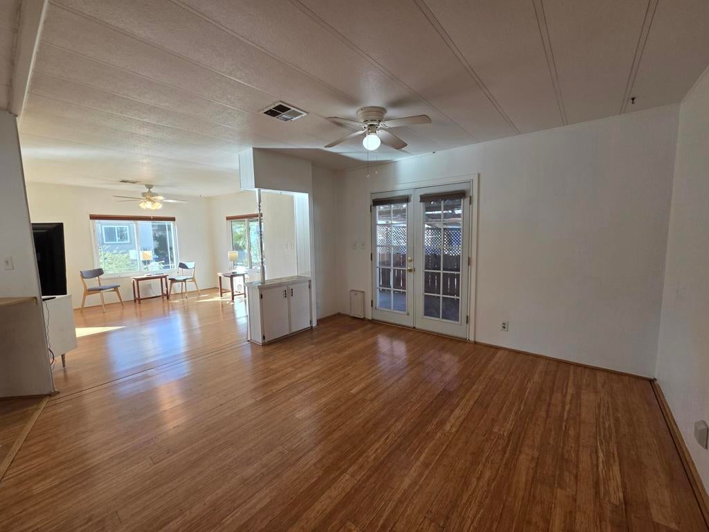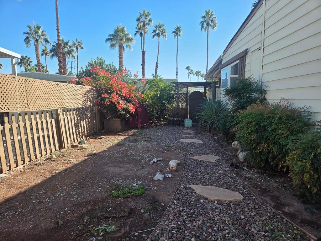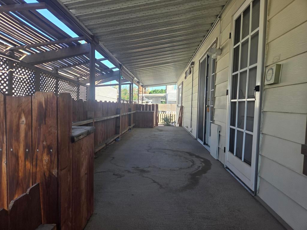 Located in the Royal Palms 55+ community, 264 Wolf, a 1977 Bendix manufactured home with 1248 sq. ft., two bedrooms and two bathrooms, offers a lovely dwelling at exceptional value. The common entry into this lovely home is via double-doors from the large north-facing deck into the spacious den area; to the right is the living room with large west-facing windows (and the formal 'front' door providing another interior access point). Adjacent is the dining area with built-in storage which leads around to the roomy kitchen with a full complement of while appliances as well as bountiful storage. A short hallway leads, on the left, to the improved 3/4 guest bathroom with tiled shower and handsome vanity. Across is the laundry room with full-size washer and dryer and ample overhead storage; the leisure door is beyond. The large guest bedroom, with ample closet, is next door and, and at the east end of the home, is the expansive primary bedroom with lovely, improved ensuite full bath. The home has an HVAC system for climate control. Flooring in the home is laminate throughout. Steps from the end of the entry deck lead down to a nice yard area ready for new plantings and quiet enjoyment. Tandem parking is under the carport awning; there is also a large shed at the back of the carport. The furniture and furnishings in the home will transfer upon sale. Space rent for the new owner of 264 Wolf will be $892.00 per month, though that figure must be verified by the buyer. Approval by park management at the Royal Palms is, or course, required for purchase.