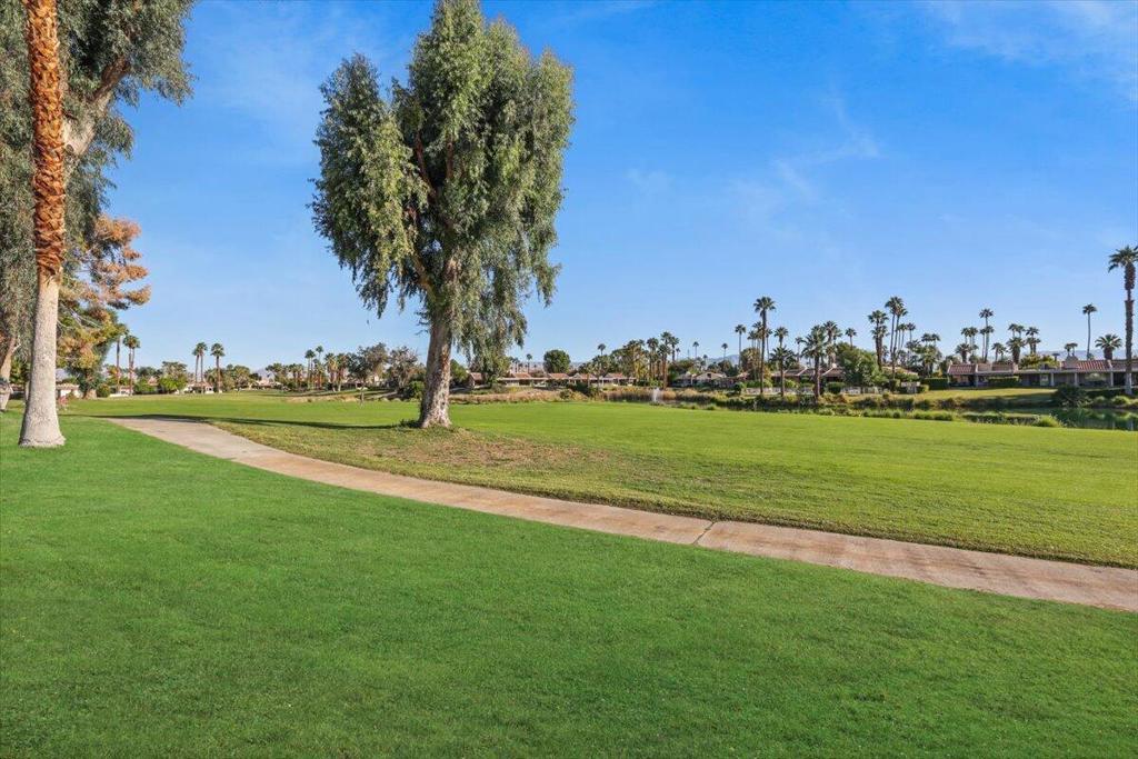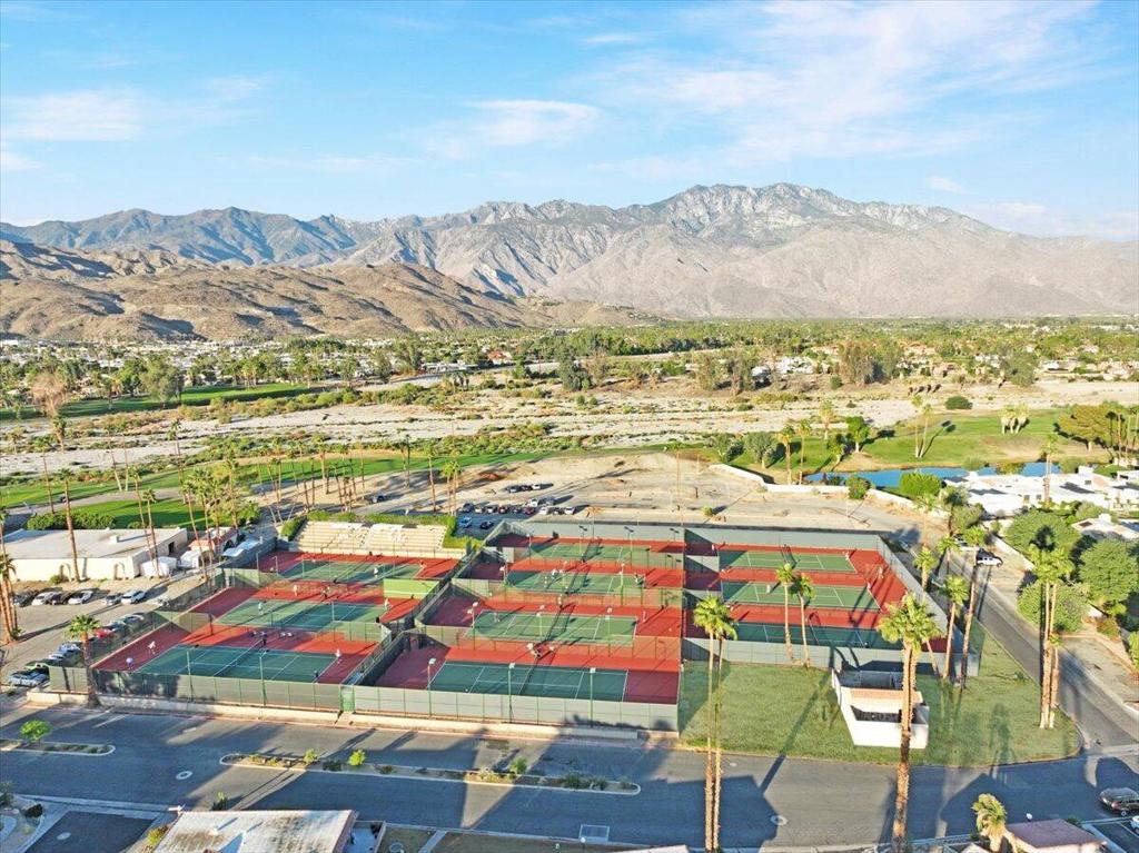 Completely reimagined and impeccably upgraded, this extensively customized condo offers an outstandinglocation in the heart of Cathedral City's gated Cathedral Canyon Country Club. This single level unit is perfectly located at the end ofan intimate cul-de-sac, steps away from one of many community pools, and a stone's throw from the Tennis Center and golf clubhouse featuring a regulation length 18 hole course, Direct access to the new CV Link bike path right from within the community. The gated entry courtyard withbeautiful mountain views creates the ideal spot for morning coffee. An expansive wraparound back patioborders the lush fairways of the community's 18-hole golf course and embraces vast vistas of rolling turf anda shimmering lake. Indoors, two bedrooms, two baths, a den with courtyard access, and a custom bonusroom/office that opens to the rear patio are revealed in approximately 1,736 square feet. Walls werereconfigured to create a seamless space that enriches daily living and effortless entertaining. A custom MidCentury-inspired entry door leads to living and dining rooms that frame scenic views through windows andsliders opening to the patio. Chefs of all skill levels will appreciate an open kitchen with peninsula bar,handsome stained-wood Shaker cabinetry, solid-surface countertops, a full tile backsplash and preferredstainless steel appliances. Both bedrooms provide patio access, and the primary suite hosts frosted-glasswardrobe doors and an ensuite bath with custom walk-in shower. Recessed LED lighting, contemporarylighting fixtures and solar-tube skylights illuminate the home, while custom paint, designer floor tile, ceilingfans and plantation shutters lend upscale flair. Upgraded dual-paned sliders throughout, newer HVAC, a split AC unit inthe bonus room, and a newer roof with recent re-coat enhance energy efficiency. Outdoors, the patio andcourtyard decking was resurfaced to look like stone. The Cathedral Canyon Tennis Club and clubhouse aresteps away, and the gated enclave features countless pools, parks and pathways. This residence isperfect as a lock-and-go vacation getaway and a wonderful year-round home. Downtown Cathedral City'sshops and restaurants, Palm Springs, Rancho Mirage and Palm Desert are all within easy reach, and milesof hiking trails, scenic parks and even a surf club are moments away