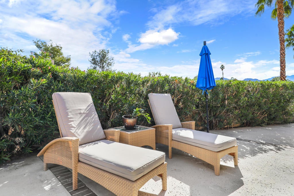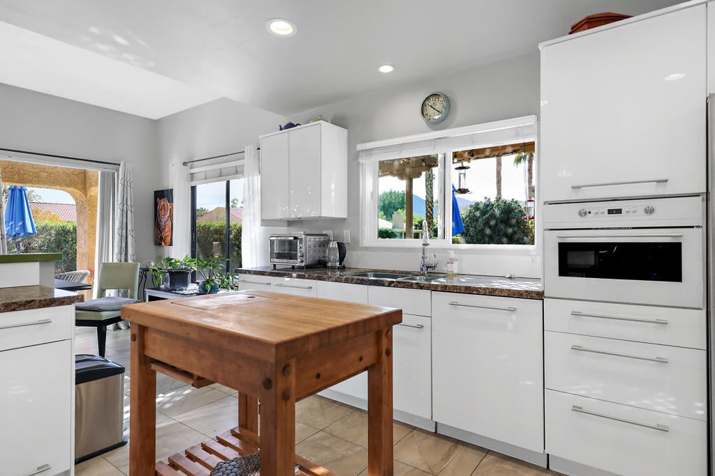 Gourmet Chefs Delight! This beautifully Remodeled 2 bdrm/2bath home in Hidden Palms comes Turnkey Furnished with the Kitchen of your Dreams. Specialized kitchen items include Baker's Cabinetry, Pull Out Shelving, Soft Close Doors and many other fine features. Designed to include Bar Style, Counter top seating for up to SIX people to share in the creation of the chefs magical delights. In addition, the Open Floor Plan allows for Dining Room and Living Room relaxation under High Ceilings, Recessed Lighting and a Warm Fireplace on cold evenings. The recent remodel included a new beam to create the Open Kitchen, all done with permits as required. The floor plan is much different from other homes in this complex, making this the perfect place for hosting a dinner with friends or enjoying a quiet evening outdoors.Private Spa, right outside primary bedroom; Wrap around Patio, Outdoor Kitchen area, Mountain View and Garden Setting further enhance the enjoyment of this tranquil home. Truly an artists delight. New roof added in 2018 and new HVAC added 2017. HOA covers your Guard Gated Security, Cable, Trash, 8 Pickleball, 3 Tennis, 4 Pools, Lake with Fountain and Walking Paths. Development is in the process of converting lawns to desert landscape. Great long term or seasonal rental potential with 30 day rental minimums. * newer pickleball courts, 3 tennis courts and 4 community pools. Centrally located in the Coachella Valley, midway between Palm Springs and Indio. Close to College of the Desert, El Paseo the McCallum Theatre, restaurants and coffee shops.The New call box system (Cellgate) makes entry EZ after guard is off duty.
