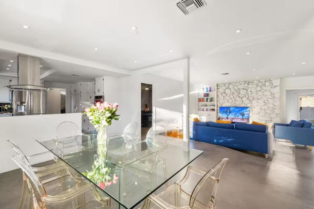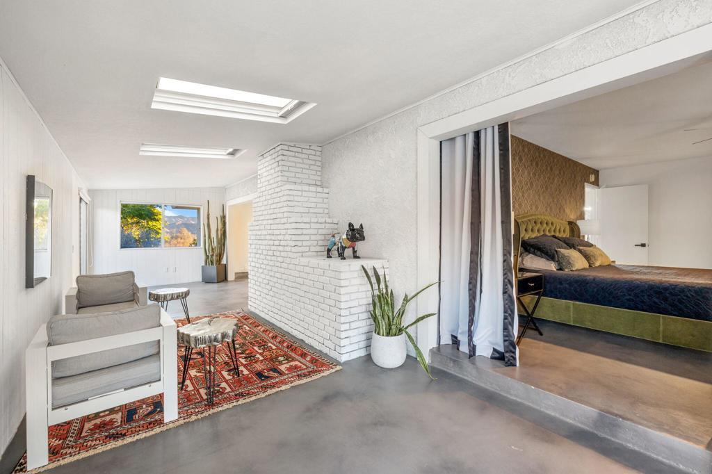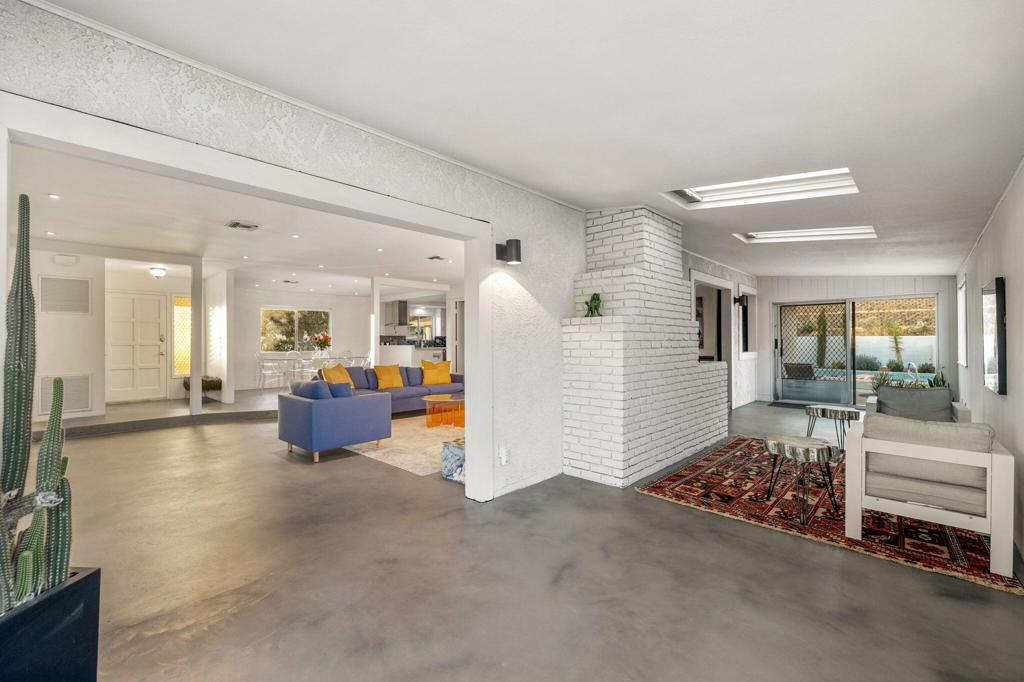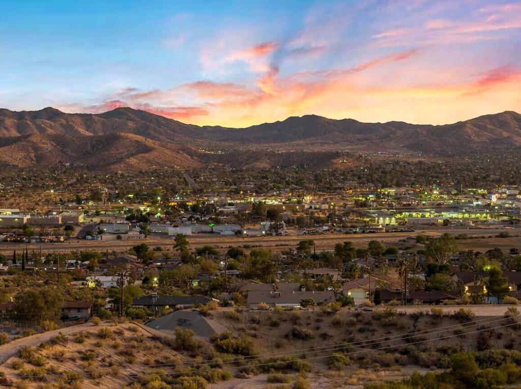 Beautifully remodeled turn-key hillside pool home overlooking Yucca Valley. Expansive 3 bed and 3 baths on over .33 acres with an upgraded 3 car garage. Western Hills Estates is a premier neighborhood known for high valued homes, panoramic views, quiet streets and boulder studded hills. Manicured desert fauna encompasses the arched driveway leading to an entryway alcove. Front door opens to the foyer with gallery wall. Spacious living room with fireplace hearth rock wall and craftsman built in bookshelf. Professionally designed remodel with concrete floors, recessed lighting, central ac/heat, smooth and sleek walls and ceilings throughout. Gourmet chef's kitchen with stainless steel appliances, island vent hood, mirror tile backsplash, dual basin sink, long counters, ample cupboards and cabinets. Large dining area directly off kitchen. California sun room with bonus area and skylights ideal for a den, library, office or a second living room. Three bedrooms with substantial space. Oversized primary bedroom with walk in closet enjoys built in cabinetry and a private bathroom. Each bathroom is fully remodeled with designer marble and tile showers, large glass doors, floating vanities and modern design. Laundry room. Glass sliders open to the patio with in-ground pool and spa surrounded with privacy walls. Pergola style area with sunbathing loungers. Covered area for dining alfresco and outdoor sofas. Expansive concrete patio space to entertain many guests. Huge 3 car garage offers extensive space for storage. Ideal location for just a short drive to organic restaurants, cafes, bars and all amenities. 11 miles to Joshua Tree National Monument where about 3 million tourists visit annually. 44 miles to Palm Springs. Don't wait on this one call now!