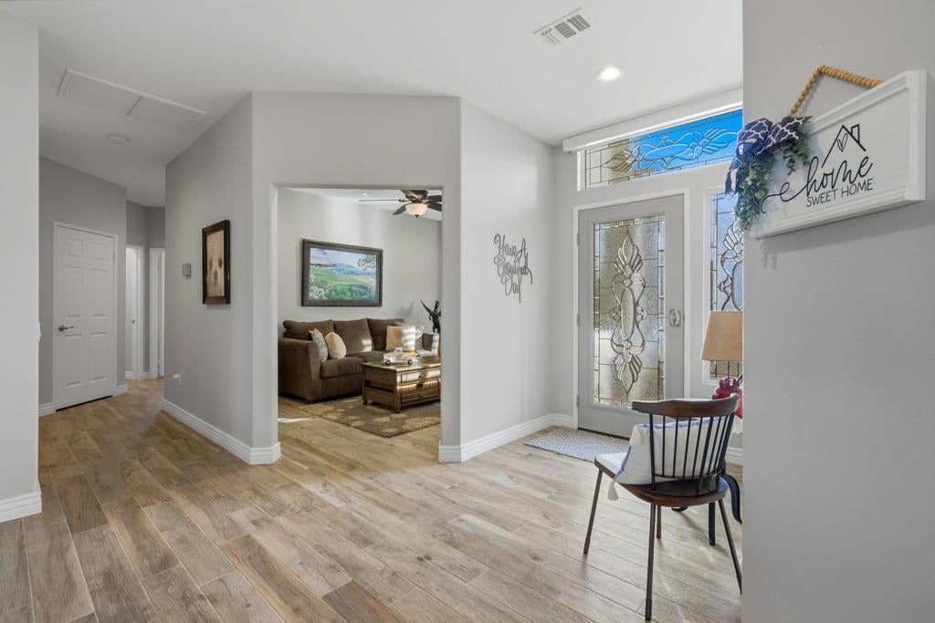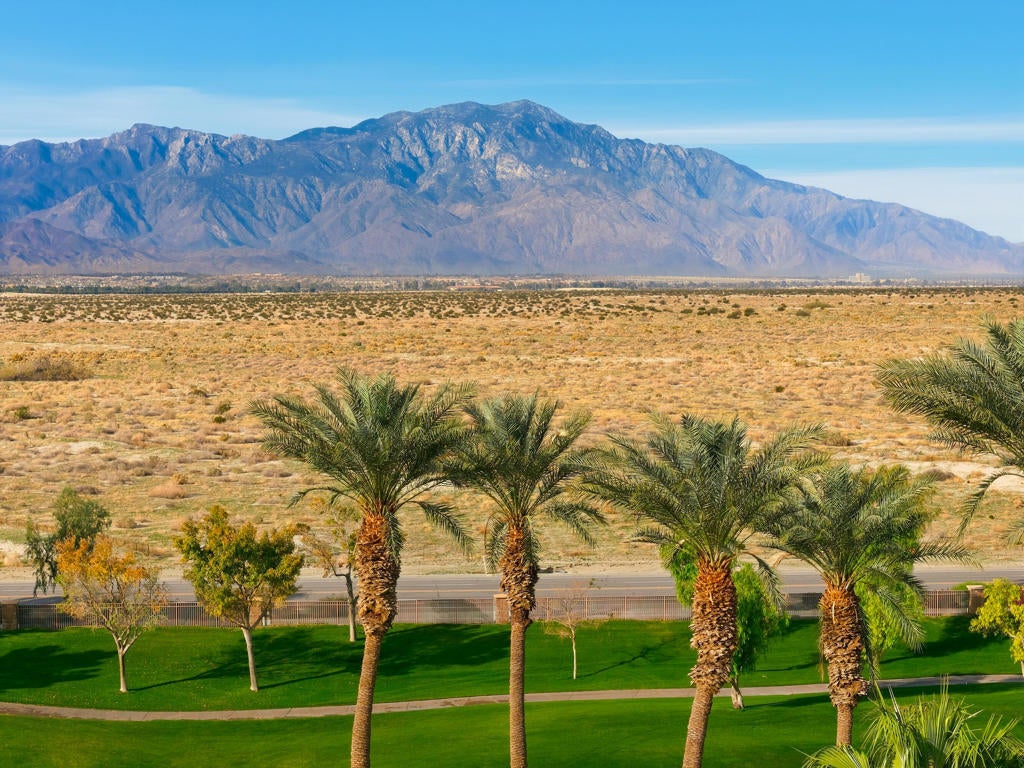 55+ Sun City Palm Desert--The 'best value'' for an active retirement community in the entire Coachella Valley. This is the most popular St. Croix model with 2 beds/2 full baths w walk-in showers, plus a DEN/HOBBY/FLEX room and an air conditioned golf cart garage. Spectacular golf course, sunset & mountain views!!! GREAT location. Stunning curb appeal features stacked stone wainscoting and desert landscaping with updated irrigation system and landscape lighting. ALL NEW EXTERIOR PAINT AND WINDOWS. NEW AC. NEW HVAC SYSTEM. COMPLETE REMODEL INCLUDES: ALL NEW CUSTOM CABINETS THROUGHOUT. CUSTOM PLANK FLOORS. NEW PLANTATION SHUTTERS throughout. Kitchen features ALL NEW KITCHEN TOP OF LINE STAINLESS APPLIANCES. The living room features a Cinematic Experience professionally installed and integrated with top of line amplifiers and sound system. The Primary bedroom is spacious, has a designer barn door concealing an EXTRA OVERSIZED WALK-IN CLOSET. Double vanity AND CUSTOM WALK IN SHOWER. Guest bedroom has fan/light,. Guest bath in hallway offers a CUSTOM WALK IN SHOWER. The famous DEN/HOBBY room is perfect for a TV room, office, workout room, and an extra guest space WHICH OFFERS A BUILT IN OFFICE. The laundry room is inside, has cabinets and sink, washer and dryer are included AND TOP SHELF. Garage is extended has TESLA CAR CHARGER, extra fridge and AC. Perfect for relaxing and/or entertaining with family and friends for the holidays! ''Buy Where you Love to Play...Sun City Palm Desert!'' ONE OF A KIND. PERFECTION.