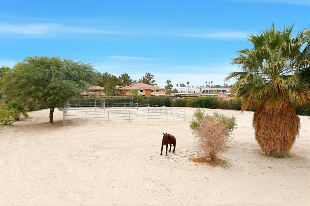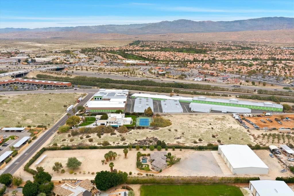 An exceptional opportunity to own a truly one-of-a-kind 2.3-acre property in the heart of Bermuda Dunes. This versatile estate features an expansive 9,600-square-foot insulated clear-span shop, complete with a built-in two-bedroom, two-bath fully equipped apartment and a bonus open-air deck--ideal for live/work flexibility or hobbies. The shop offers four 14' x 14' automatic roll-up bays and an additional half bath, providing outstanding functionality and access.The property also includes a walled in custom one-bedroom, one-and-a-half-bath residence showcasing a beautifully appointed kitchen with nostalgic Heartland appliances, an open great-room concept, and abundant natural light. Large windows and sliding glass doors open to lush landscaping, a sparkling pebble-tech pool and spa, and serene outdoor living spaces. The primary suite features dual sinks, a walk-in shower, a spacious closet, and an in-home washer and dryer. A two-car garage completes the residence.Additional highlights include three RV hookup sites, an RV dump station, mature citrus trees, and ample space to build a larger custom home if desired. Conveniently located with easy access to surrounding cities, freeway connections, dining, and shopping, this rare property truly offers endless possibilities.Come experience all this remarkable property has to offer.