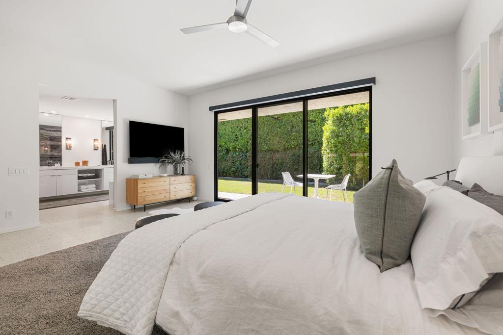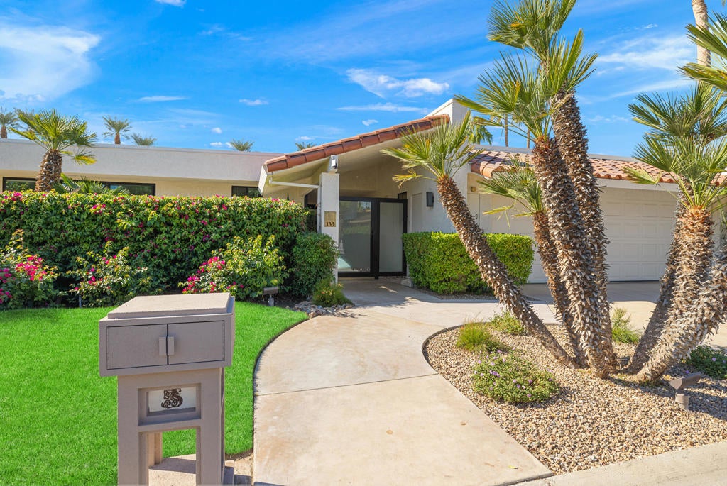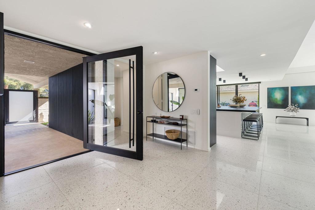 Welcome to this exclusive desert hideaway in The Springs, where modern elegance meets ultimate comfort. The WOW factor starts at the beautiful glass pivoting front door, setting the tone for the stunning interior that awaits. Gather your friends and family around the impressive 12' x 7' honed quartz kitchen island, which seats 10--perfect for entertaining! This contemporary chef's kitchen boasts sleek white lacquer uppers and rich espresso lower cabinets, featuring top-of-the-line appliances including a 6-burner dual-fuel Wolf range, a 54'' Fisher Paykel built-in refrigerator, and a Gaggenau wine cooler.With large format Terrazzo porcelain tile flooring throughout, the home exudes a sleek desert vibe. The upgraded Level 5 smooth coat walls, Smart Home system with all AV equipment included, and power roller shades elevate the living experience to new heights. Each remodeled bathroom features designer-inspired finishes, while the primary suite is a true retreat, complete with a luxurious soaker tub and dry sauna.Step outside to discover your own hidden oasis! With beautiful privacy hedges, the expansive yard wraps around 3 sides of the home and showcases new concrete sand finished pool decking, perfect for lounging and dining, along with a large pool, spa, and fire pit--ideal for gatherings under the stars.This home is move-in ready and perfectly dialed in!