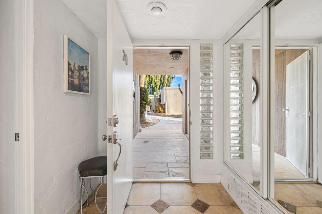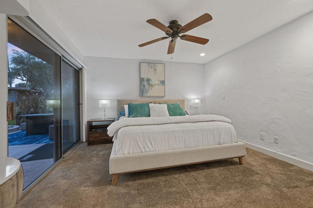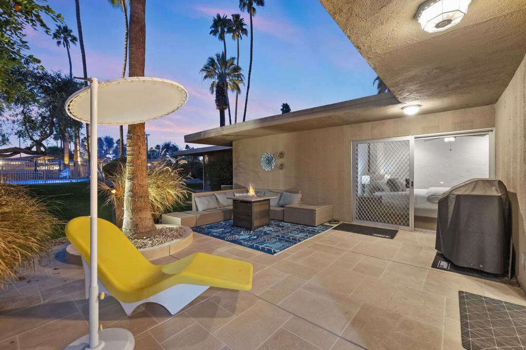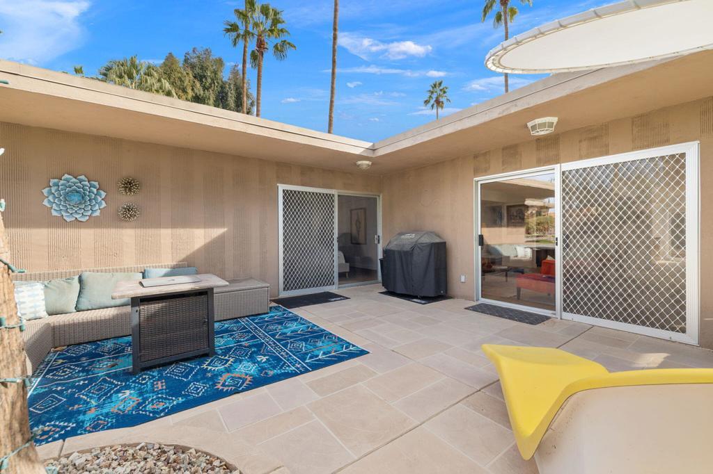 Classic Mid Century Bermuda Fairway Villas - a charming enclave of Adorable Mid-Century cottages nestled between the 1st and 18th fairways of Bermuda Dunes Country Club.This beautifully and professionally remodeled condo offers a bright and welcoming atmosphere with only one common wall and convenient access to the community pool, spa, and parking.Upgrades include:Newer stainless steel appliancesHigh-end wooden window blinds and updated slider blindsRadiant electric fireplace insertLight textured paint on walls and ceilings for a fresh, airy feelNewer baseboards and tile flooring throughoutNew electrical panel and outlet rewiring (2018)Brand-new AC/heat pump (2024)The home also features added square footage, creating a spacious dining/great room area. One of the highlights is the expansive tiled patio, perfect for outdoor entertaining.Additional amenities:Attached golf cart garage with automatic opener, full-size washer & dryer, and extra storage space for your golf cartOne covered parking space plus tandem parking for a second vehicleHOA covers all exterior maintenance (including roof), landscaping, water, trash, septic, and exterior pest controlHOA dues include cable TV (two boxes with HBO, Showtime & Cinemax), Spectrum internet, and 24-hour guard-gated. Villas HOA fee includes, trash, water, waste, exterior wall paint/lighting and roof maintenance.Come see this rare opportunity to have Mid Century Charm with today's standards of living accommodations