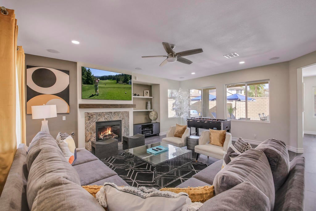 Welcome to your dream investment in the exclusive Terra Lago community of Indio! This stunning 4-bedroom, 3-bathroom home is a short-term rental goldmine, boasting a proven track record of profitability. Step into a beautifully designed interior featuring quartz waterfall edge countertops, white shaker cabinetry, and upgraded stainless steel appliances, all complemented by tasteful modern furnishings and an open concept floorplan. The outdoor space is an entertainer's paradise with a fully pavered backyard, a sparkling heated pool and spa, a spacious sideyard with putting green, an outdoor fireplace with ample seating, and a built-in kitchen under a covered patio. Located in a prime spot within the community, this property is the perfect blend of luxury and income potential. Located in the sought-after Terra Lago community, your guests will love the convenience of being just minutes away from world-class golf courses, shopping, dining, and the famous Coachella and Stagecoach festivals. Whether you're looking to continue its success as a short-term rental or make it your personal desert oasis, this property is a rare find. Don't miss out on this exceptional opportunity to own a piece of paradise in Indio!