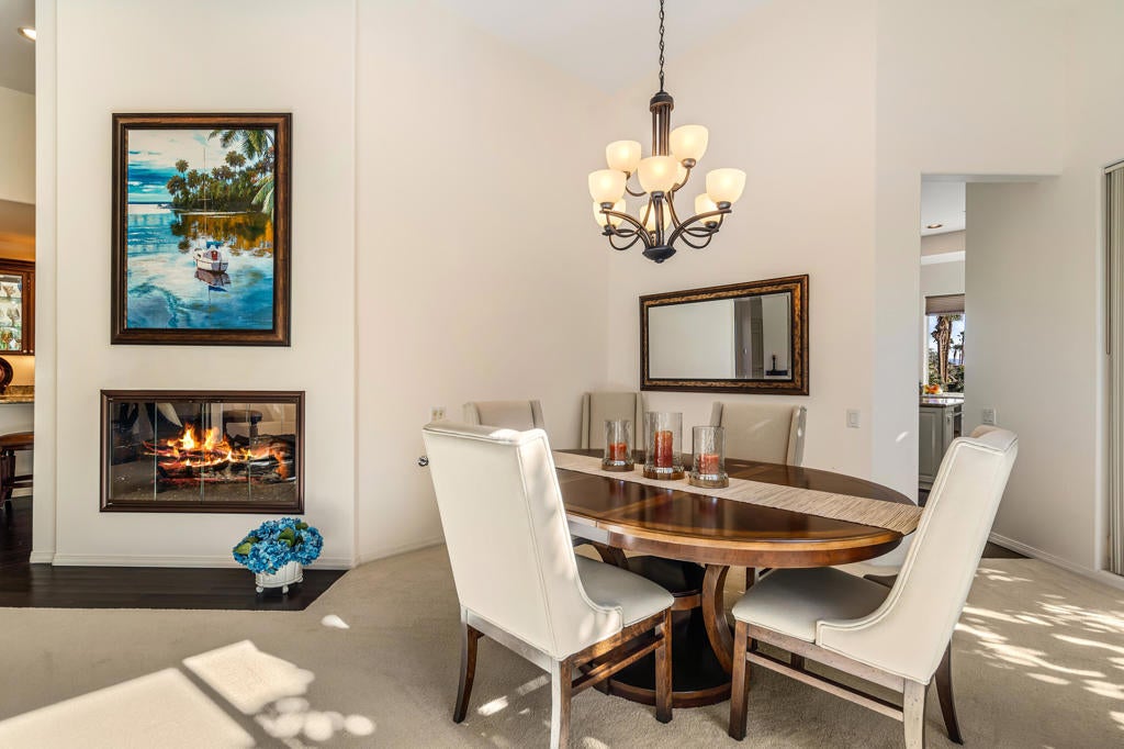 Tranquil and private setting overlooking the PebbleTec pool/spa, lagoon, waterfall as well as beautiful mountain views. Popular Spyglass floor plan offers 3 en-suites and and a powder room. Beautifully updated featuring hardwood flooring, white custom cabinetry and granite slab counter tops. This sought-after floor plan includes a formal living and dining room, separate family room, see through fireplace and eat-in kitchen. The high ceilings and abundance of windows a light & bright airy living space. Located in the heart of Indian Wells this home is desert living at it's best.