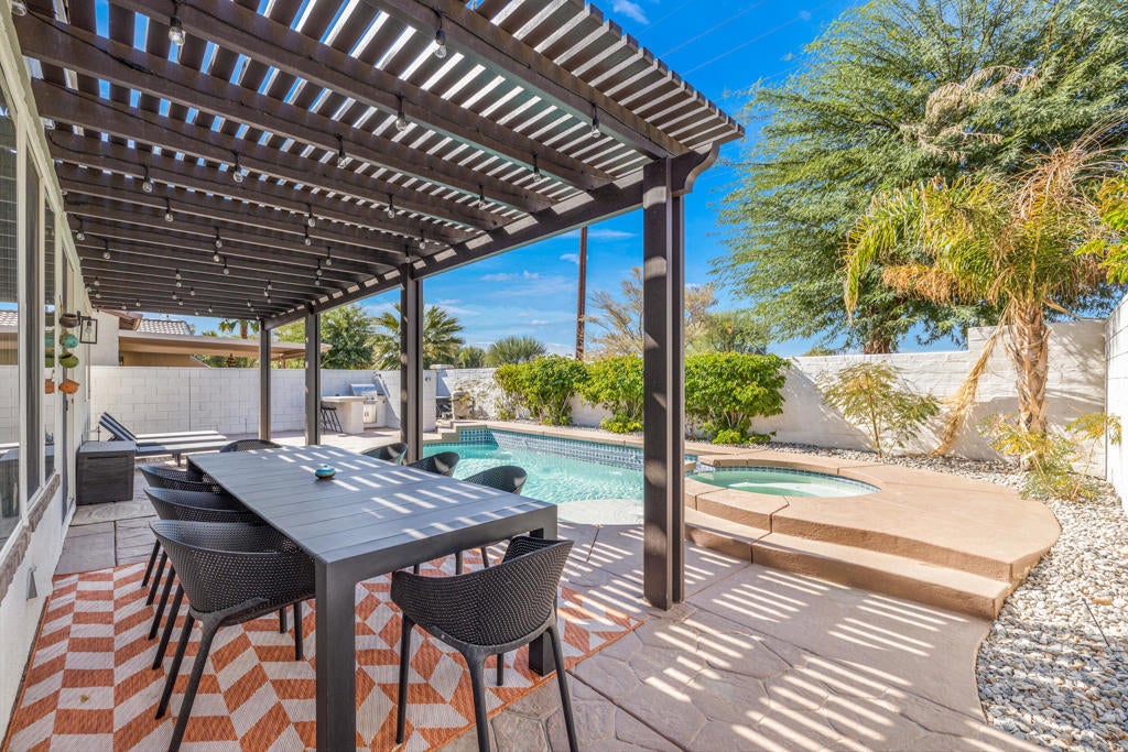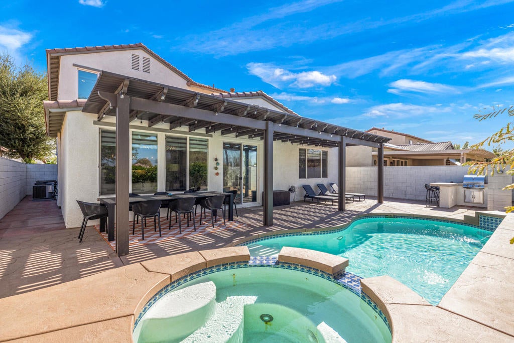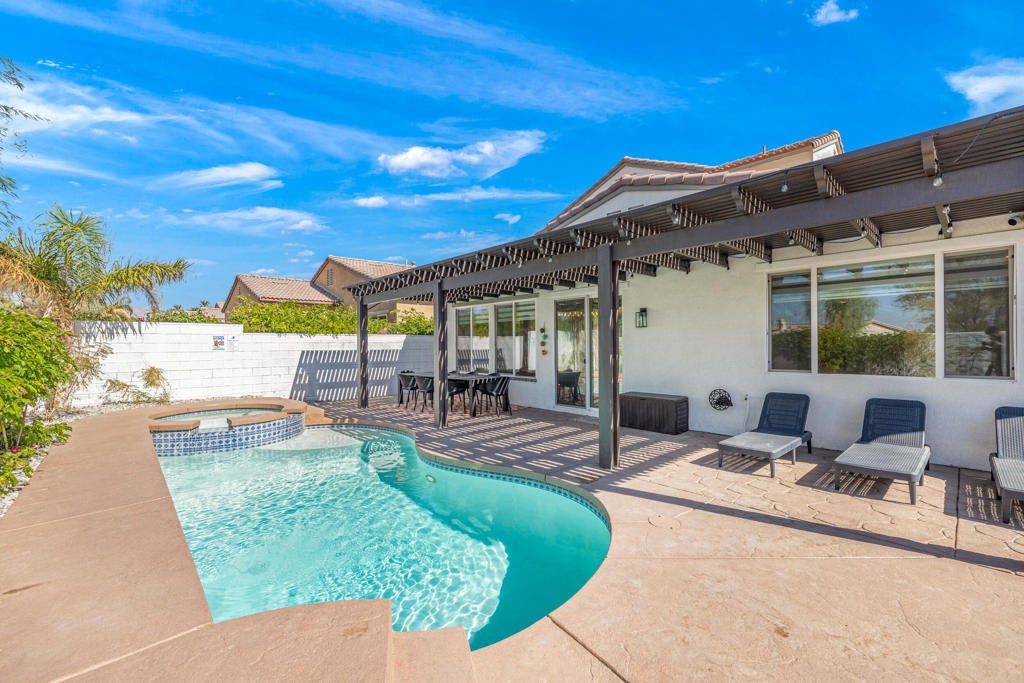 This single family residence is located in the desirable Terra Lago subdivision of Indio, North of I-10. This two story home built in 2009 has approximately 2,338 square feet of living space with four bedrooms, two full bathrooms, and one half bathroom. The home is fully furnished for comfort and convenience and features a beautiful fireplace for cozy nights inside. Outside, you will find a pool and spa surrounded by natural mountain views. Experience luxury living in the heart of the desert!
