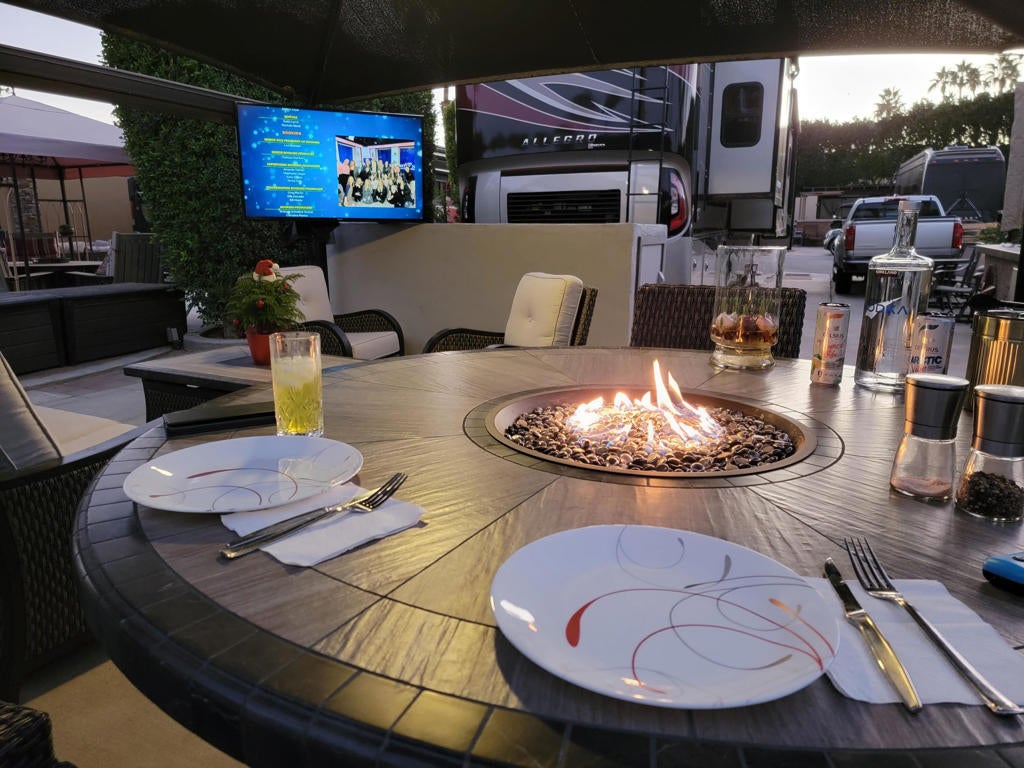 Tucked into a peaceful setting at Outdoor Resort Indio, Lot 158 offers the perfect balance of privacy, comfort, and resort-style living. Mature hedges frame the back and sides of the lot, creating a secluded outdoor retreat, while a small opening at the rear provides direct access to the Phase 2 golf course path and a glimpse of the fairway beyond.The heart of the lot is centered around a large sunshade with a ceiling fan and TV mount, ideal for relaxed afternoons or game-day gatherings. Evenings are enhanced with light posts, a fire table surrounded by six chairs, and the soothing sounds of two water fountains--one at the back corner and another near the front of the lot.A medium-sized outdoor kitchen with sink makes cooking easy, while a BIKE BUNKER storage unit with coded entry provides secure space for bicycles and gear, doubling as an added privacy buffer at the back of the lot. With tasteful landscaping and all the essentials for entertaining, Lot 158 is ready to elevate your Class A motorcoach lifestyle.Outdoor Resort Indio is a Class A only RV resort.