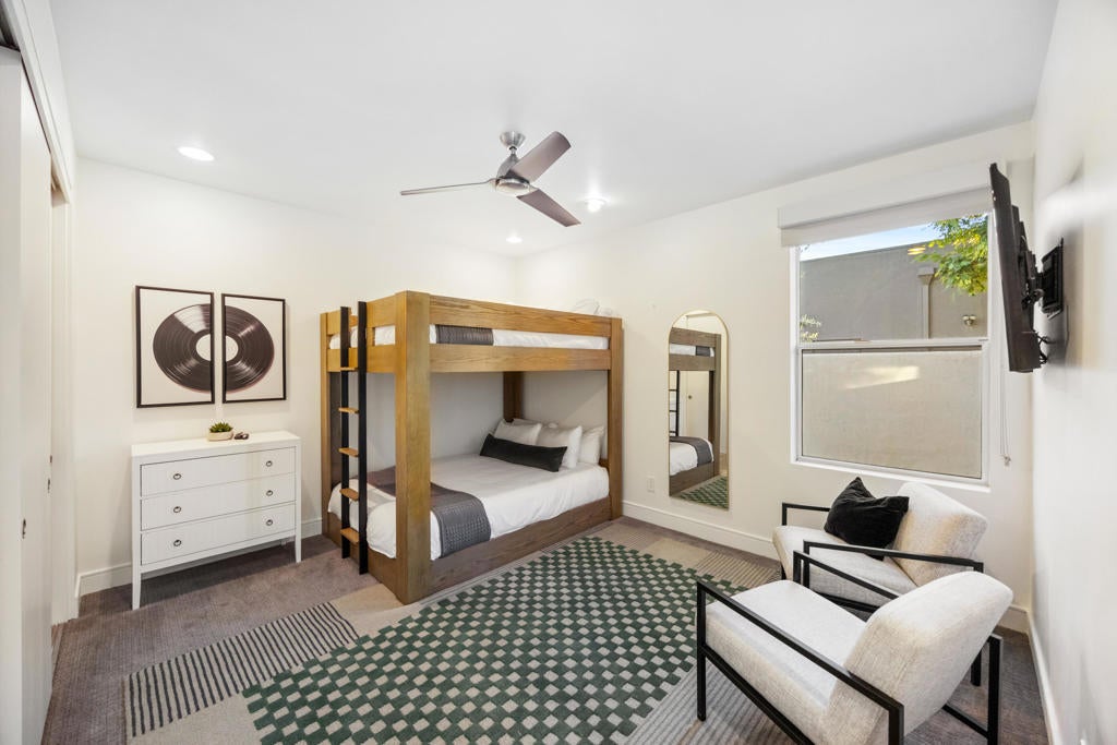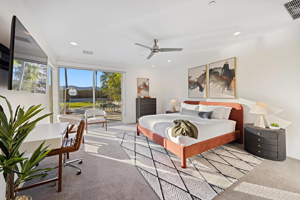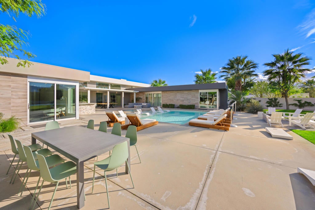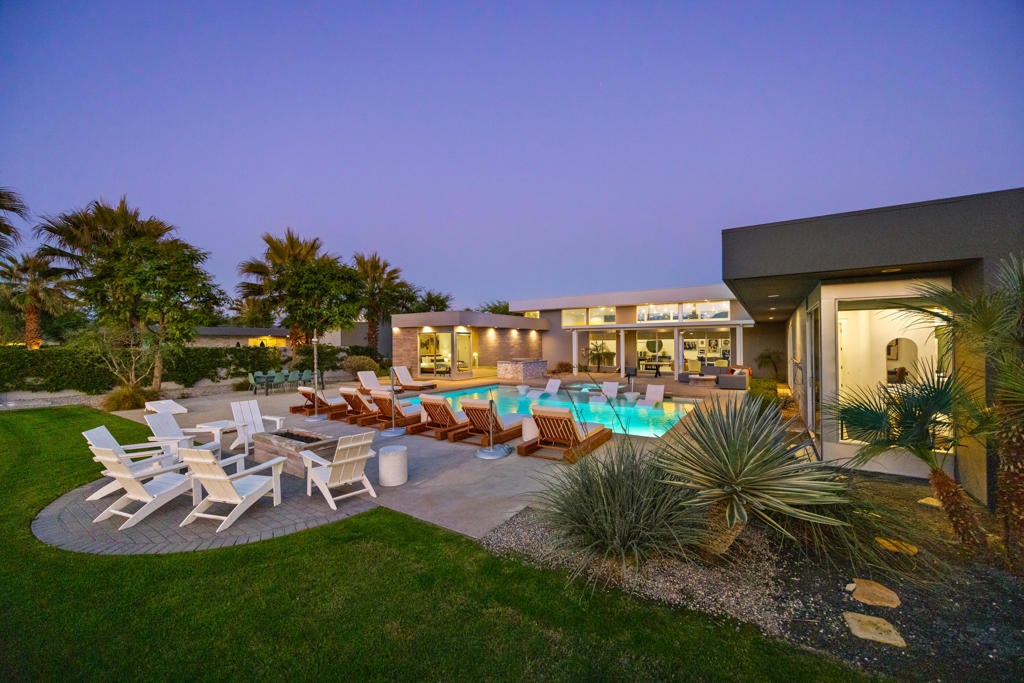Located in the highly sought-after Polo Villas community of La Quinta, this stunning contemporary estate presents a rare opportunity to own a luxury property just minutes from the world-famous Coachella and Stagecoach festival grounds. Designed with both lifestyle and investment in mind, this 6-bedroom, 6.5-bath residence spans approximately 3,638 square feet and delivers an exceptional blend of modern design, comfort, and income potential. Clean architectural lines, soaring ceilings, and an open-concept layout define the interior, creating an inviting atmosphere ideal for entertaining large groups or hosting extended stays. The expansive living area features elevated finishes, a cozy fireplace, and seamless indoor-outdoor flow, making it perfectly suited for gatherings during festival season or relaxed desert living year-round. Situated on an oversized lot, the outdoor space is a true highlight. Enjoy a resort-style pool and spa, pickleball court, outdoor kitchen, and a welcoming firepit--an ideal setting for entertaining guests before or after events at the nearby Empire Polo Club. The generous yard offers privacy and space rarely found so close to the Coachella event grounds. The home offers two spacious primary suites, each with en-suite bathrooms and large walk-in closets, providing privacy and comfort for owners and guests alike. Four additional bedrooms ensuite, make this property exceptionally well-suited for group stays, short-term rentals, or multi-generational living. Additional features include a private gated community, solar energy system, Level 2 EV charger, and approval for short-term vacation rentals in the City of La Quinta--an invaluable advantage for buyers seeking a high-performing investment property near major annual events. Whether you're searching for a luxury desert retreat, a festival-adjacent vacation rental, or a strategic addition to your real estate portfolio, this exceptional Polo Villas estate offers location, lifestyle, and income potential in one remarkable package.