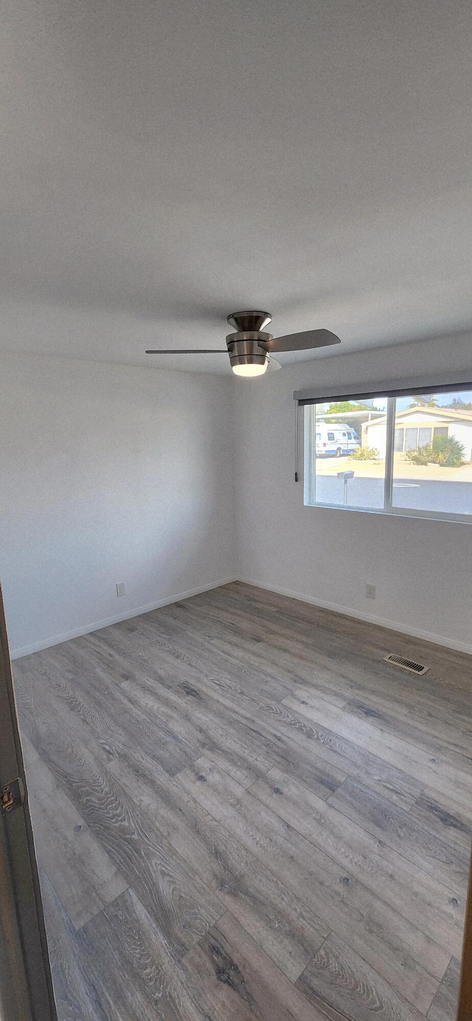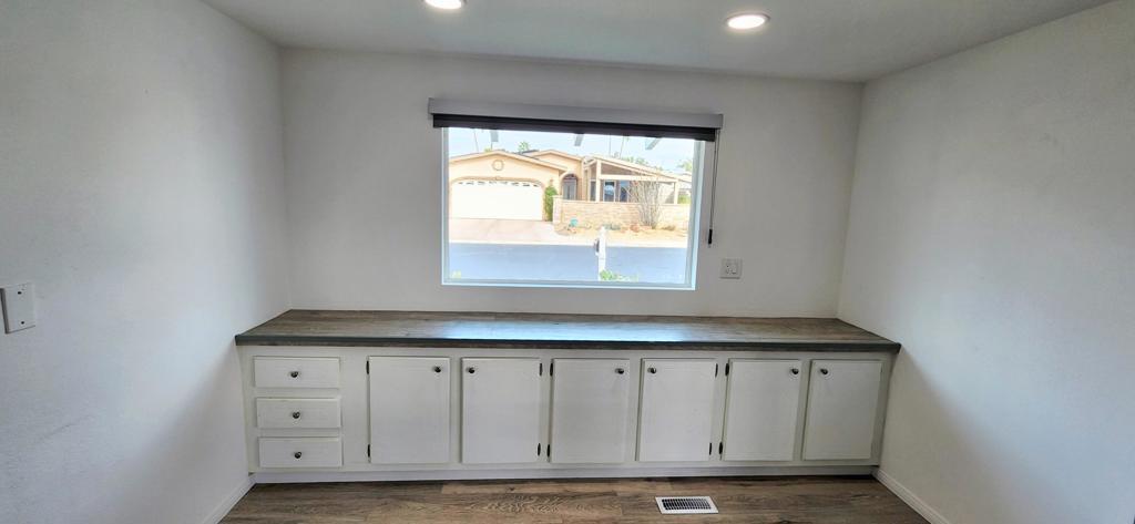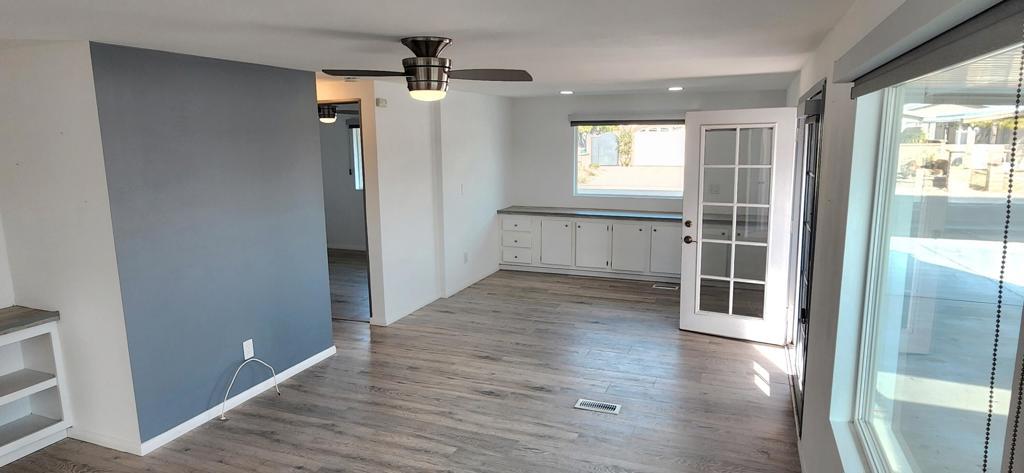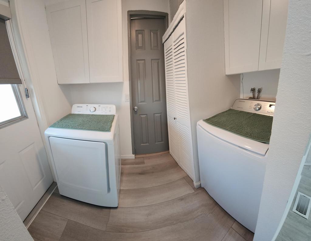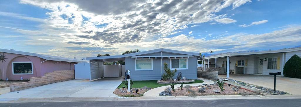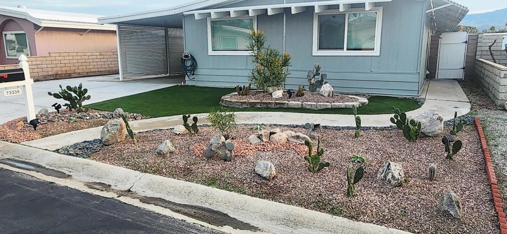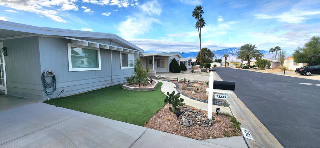 Experience a private pool retreat at an exceptional value. This residence features a thoughtfully designed split open floor plan that prioritizes both comfort and functionality. Expansive dual-pane windows provide ample natural light as well as picturesque views of the pool and spa area. The remodeled kitchen is appointed with generous counter space, extensive cabinetry, a substantial island, and stainless-steel appliances. Additional enhancements include luxury vinyl plank flooring, ceiling fans, and freshly painted interiors. The primary bedroom has direct access to the pool and spa and boasts an en-suite bathroom with a spacious closet, sizable vanity, and a tiled walk-in shower. For enhanced privacy, the guest bedroom and updated guest bath are located on the opposite side of the home. . Recent updates ensure the home is move-in ready and constructed on a permanent foundation (433A), supporting a variety of financing options. Overall, this residence combines quality, comfort, and convenience in a highly desirable location at Palm Desert Greens Country Club where you OWN the land and the low $400 monthly HOA fee includes 24/7 Guard gated security, Cable TV, Internet, Trash Service, FREE GOLF and so much more!