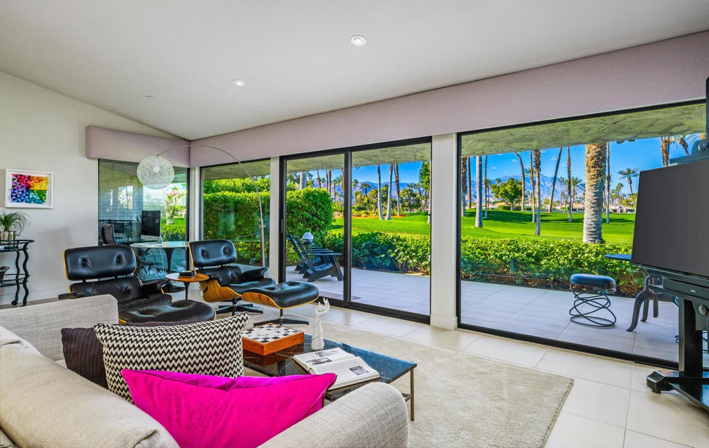 Discover the pinnacle of desert living in this stunningly reimagined 3-bedroom, 3-bath home, nestled within the exclusive Desert Horizons Country Club in Indian Wells. From its west-facing orientation, you'll wake up to mesmerizing mountain vistas and unwind with sunsets that paint the sky over a picturesque triple fairway. It's a view you'll never tire of. Inside, the home has been transformed into a masterpiece of modern elegance and comfort. A newly added structural beam opens up the living and dining areas, creating a spacious, light-filled sanctuary centered around a chef's dream kitchen. Outfitted with double convection ovens, two sinks, two dishwashers, and abundant storage, it's a space that's as functional as it is stylish--perfect for entertaining or indulging your culinary passions. The enclosed atrium enhances the flow of the home, adding extra space and a peaceful ambiance. The primary suite is your personal haven, complete with a spa-like bathroom, a generous walk-in closet, and even an integrated laundry area for ultimate convenience. Every corner reflects careful attention to detail, from the high-end finishes to the impeccable craftsmanship. Recent upgrades include two newer HVAC systems, motorized blinds on west-facing windows, a new awning, and a tiled back patio that effortlessly transitions between indoor and outdoor living. The front courtyard has been reimagined with custom landscaping, a new irrigation system, and a bespoke entry gate, creating a welcoming first impression. Thoughtful touches like stainless steel hinges, plush new carpeting, and an epoxy-coated garage floor elevate the home's functionality and charm. Whether you're enjoying quiet mornings, hosting lively gatherings, or simply soaking in the breathtaking surroundings, this home is designed to enrich every moment. Meticulously updated and lovingly maintained, this isn't just a house--it's your gateway to an unparalleled desert lifestyle.