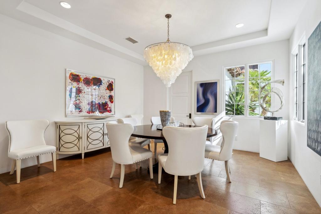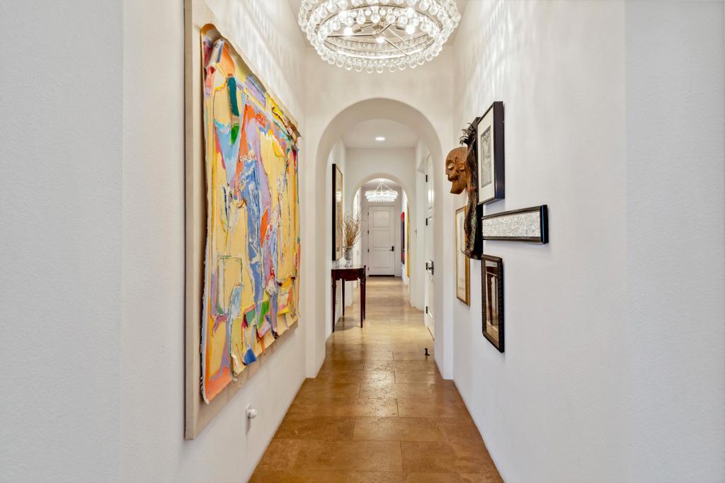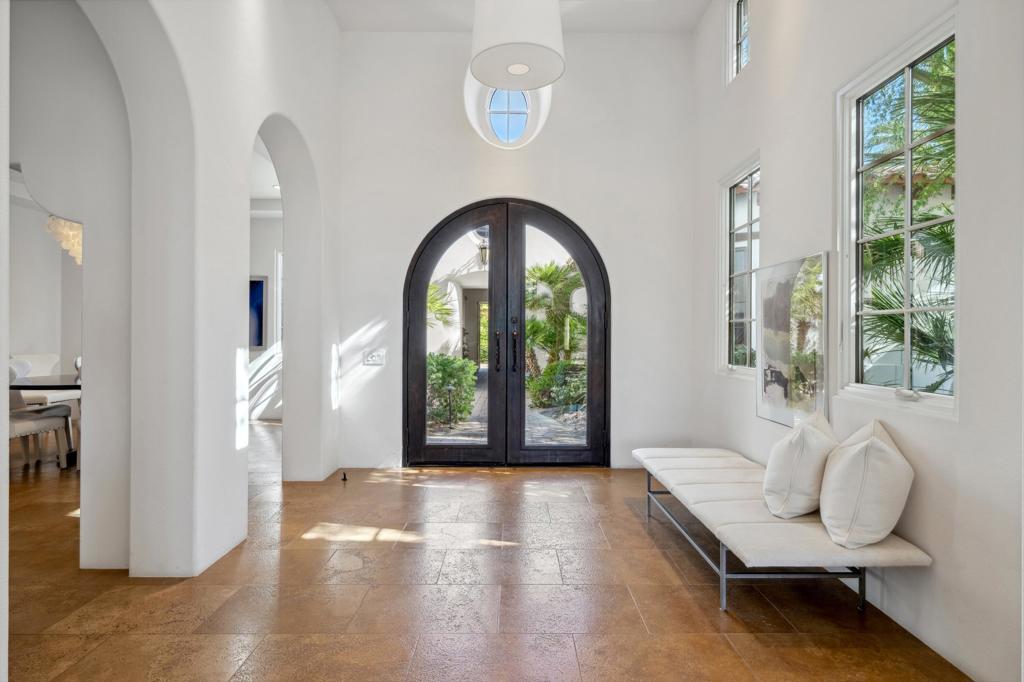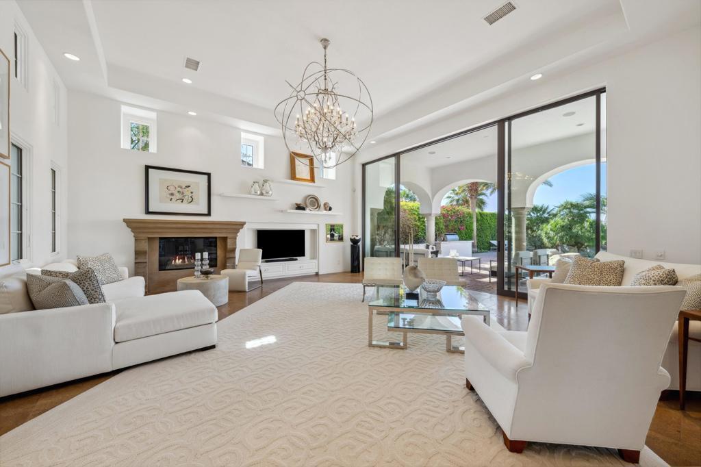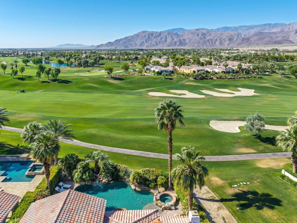 Experience refined desert living in this exquisitely appointed South-facing home, ideally located in the prestigious Andalusia Country Club. Perfectly positioned to capture unobstructed views of the Santa Rosa and Coral Mountains and the lush fairways of the Rees Jones-designed golf course, this residence offers a perfect harmony of refined style, relaxed living, and scenic beauty. From the moment you step through the private entry, you're welcomed into a thoughtfully designed interior, beautifully curated with designer furnishings and exquisite lighting that elevate every space. The open-concept layout flows effortlessly from the elegant great room to the chef's kitchen, complete with premium appliances and an oversized island ideal for entertaining. Stone flooring enhances the home's luxury, while walls of glass in the great room invite in abundant natural light and frame captivating views. The spacious primary suite is a private retreat, featuring a spa-like bathroom with dual vanities and generous walk-in closets. A detached two-room casita offers guests the ultimate comfort with its own fireplace, kitchenette, and private entrance. Step outside to discover a resort-style backyard designed for year-round enjoyment. A stunning saltwater pool with a spa takes center stage, surrounded by a covered loggia, built-in BBQ island, and inviting fire pit - perfect for sunset gatherings or stargazing under the desert skies. Come live the life you've always imagined!