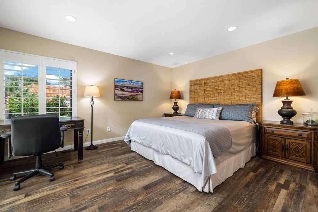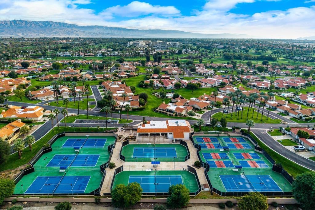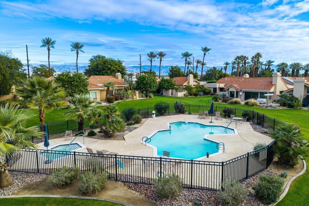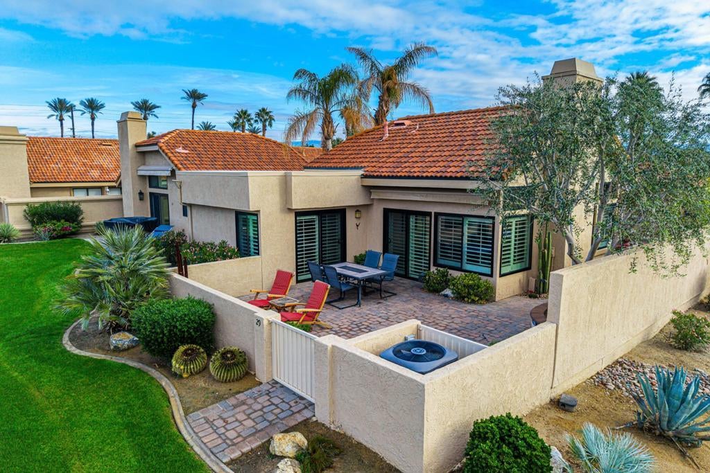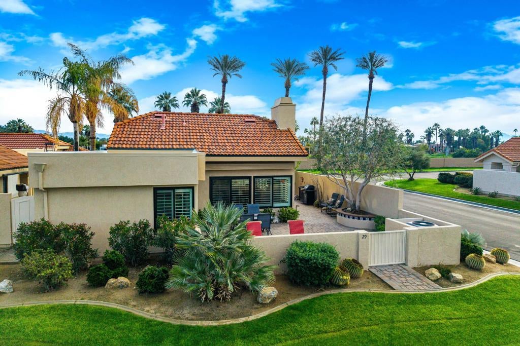 Extensively upgraded and meticulously maintained, this Palm Desert residence offers refined desert living with thoughtful improvements throughout. The remodeled kitchen features custom cabinetry, stone backsplash, granite countertops, upgraded lighting, and newer stainless steel appliances, perfect for both everyday living and entertaining. Both bathrooms have been fully renovated with travertine showers, glass enclosures, updated plumbing fixtures, and modern finishes.The light filled interior showcases vaulted ceilings, replaced windows, sliders, and skylights, enhancing natural light and energy efficiency. Popcorn ceilings have been removed throughout, including the living and dining areas, creating a clean, modern aesthetic. Updated flooring, baseboards, interior doors, and hardware provide a cohesive and refreshed feel. A stone accented fireplace with a modern burner and decorative glass serves as a striking focal point.Major system upgrades include a newer HVAC system, updated water heater with recirculating hot water system, and extensive garage improvements with insulation, finished walls, built in cabinetry, and enhanced lighting. Closet systems have been installed to maximize storage and organization.Outdoor living is highlighted by a private enclosed courtyard with fountain, ideal for relaxing or entertaining, as well as a rear patio with pavers and low maintenance desert landscaping. The HOA maintains the exterior, including roof underlayment refurbishment and a full exterior repaint completed in 2025, offering peace of mind for full time or seasonal ownership.Residents enjoy access to resort style community amenities including pools, tennis courts, manicured greenbelts, and scenic mountain views. Ideally located in the heart of Palm Desert, this home combines quality upgrades, comfort, and an exceptional desert lifestyle.