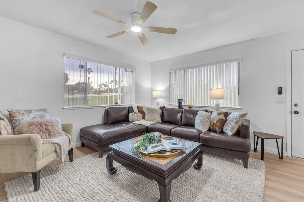 Available Jan, Feb, Mar and April-- rest of season! Rates vary dates and length of stay. Thoughtfully Renovated & Move-In Ready MINUTES to EL PASEO and Indian Wells Tennis. Welcome to this fully renovated, single-level, ground-floor condo offering comfort, convenience, and exceptional value in one of Palm Desert's most desirable locations. Ideally situated just off Highway 74 and minutes from the world-class shopping and dining of El Paseo and the Indian Wells Tennis Garden. The kitchen and every bedroom and bathroom have been newly renovated, featuring brand-new appliances and modern finishes throughout. Perfect as a full-time residence, weekend getaway, or investment property, this home also offers beautifully landscaped grounds and access to the community pool and spa. The low HOA includes water, trash, earthquake insurance, and pool & spa amenities, delivering outstanding value and peace of mind.