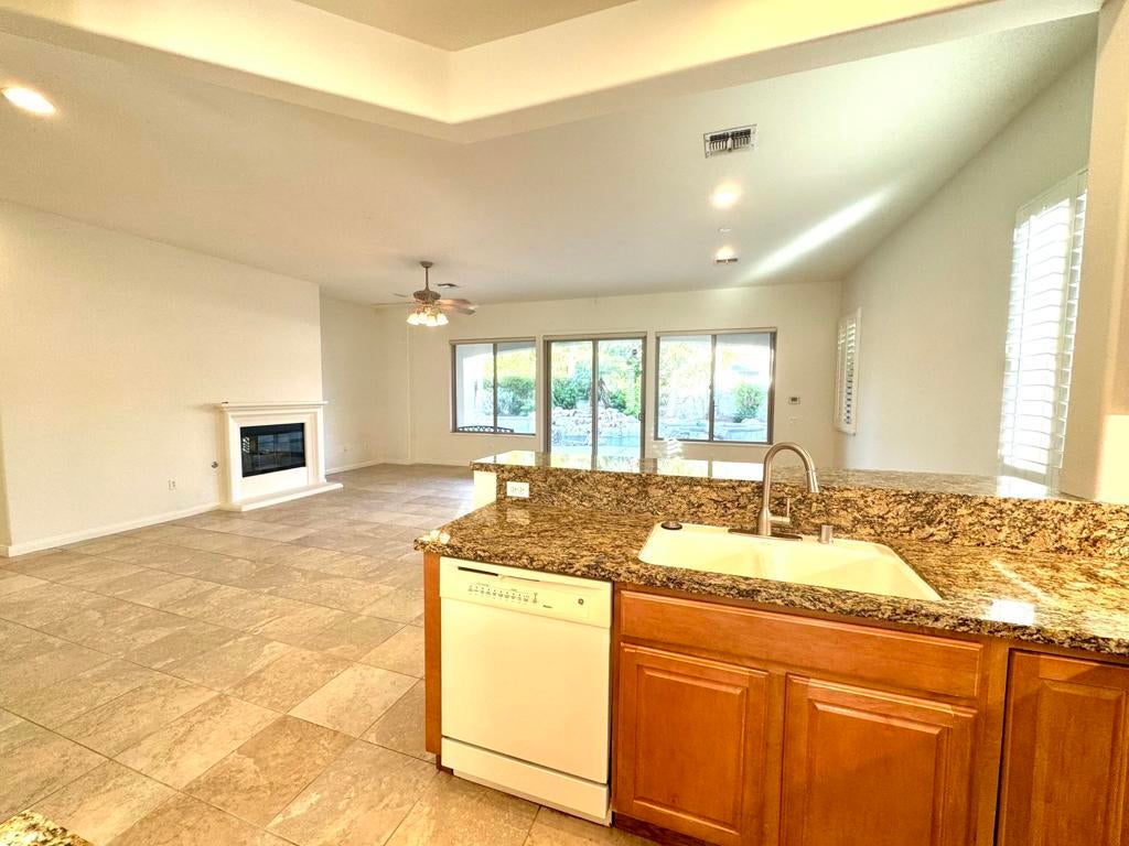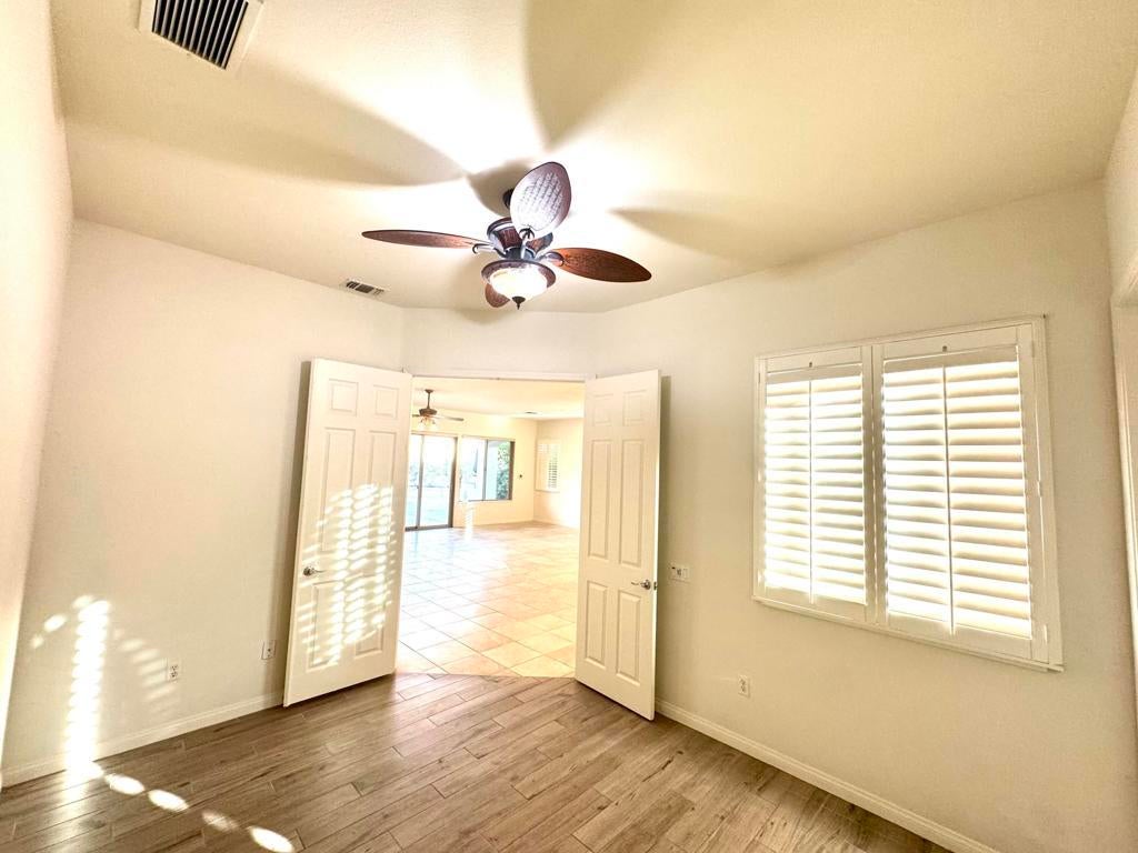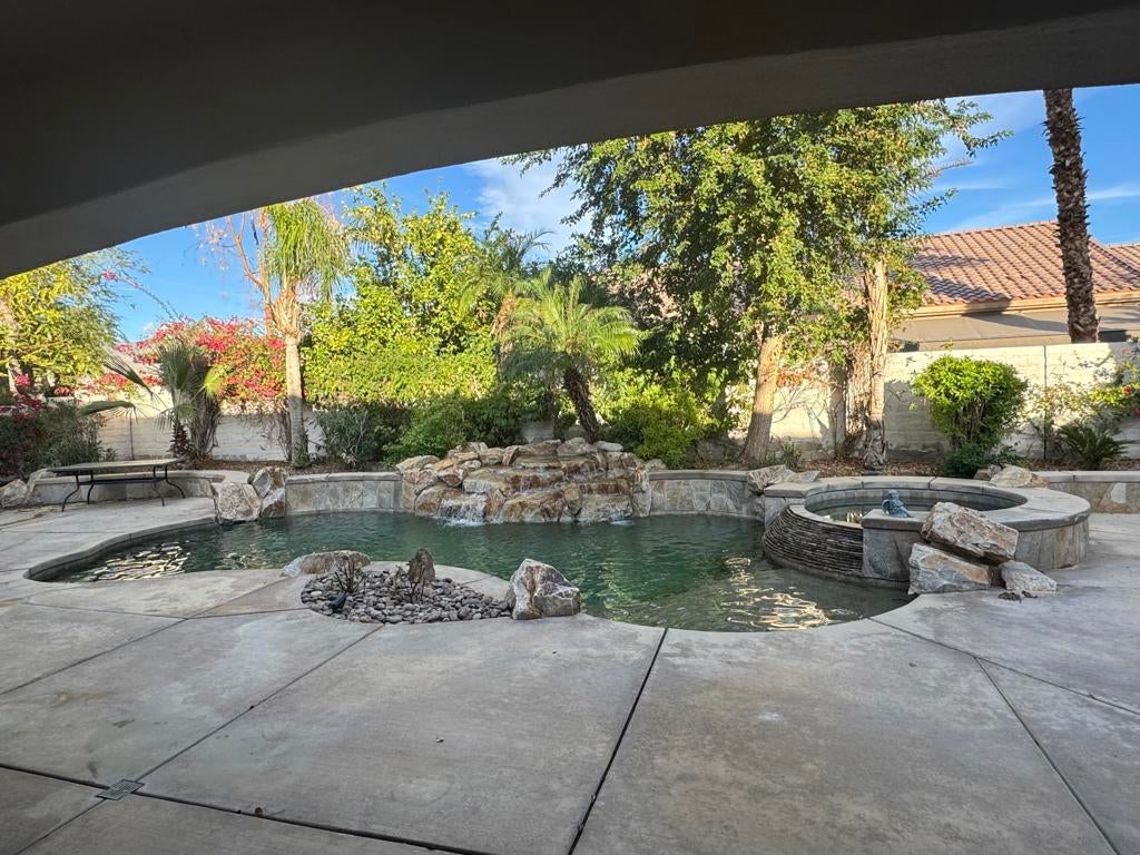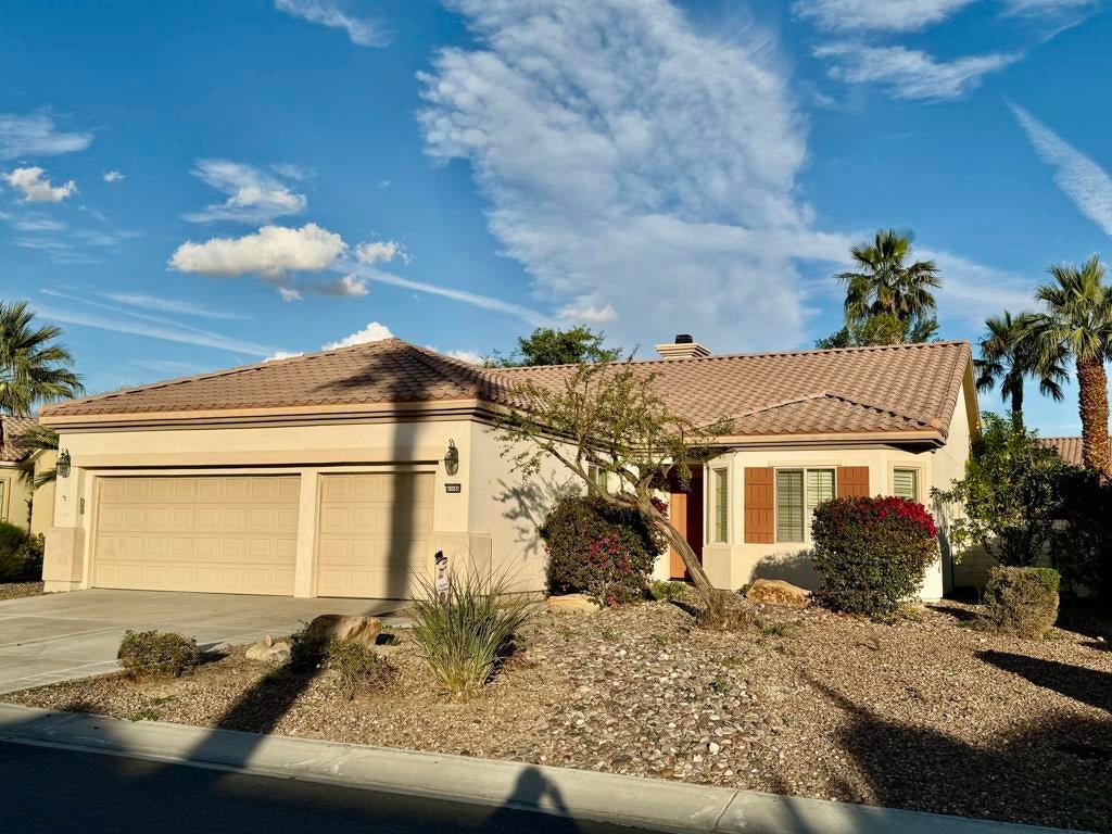 REDUCED PRICE TO SELL NOW and SELLER CREDIT of $5000 towards appliances. !!! One of the BEST Priced SAN BENITO Model in SCSH W/POOL and SPA! This beautiful,NEWLY PAINTED 2 bedroom, 2 bath, Plus DEN, PLUS SEPARATE OFFICE (or can be a small bedroom for Gkids). 2.5 car garage (Golf Cart space), home also includes a custom private pool w/cascading spa and additional large boulder/ROCK WATERFLL and a BUILT IN BBQ to boot! This popular SAN BENITO MODEL is located on a premium lot in a quiet Cul D Sac and offers a wide open floor-plan with a great room facing the kitchen, which includes a breakfast bar, solid granite countertops, many cabinets and a breakfast nook to boot. The wood shutters give it the elegant touch. The flooring throughout is an 18x18 tile floor and the rooms have NEW CARPET. The spacious Master bedroom has a view to the pool area and an exit to the stucco covered patio. The Master bath includes a double vanity, bathtub and separate shower and a large walk-in closet. SCSH is the best kept secret in the Coachella Valley for the amount of amenities you get w/such a low HOA. SCSH residence get to enjoy a PGA style regulation immaculate golf course with MILLION DOLLAR VIEWS, as well as a PAR-3 course which is rated top 10 in the country and don't forget the 18 hole putting course for you and friends enjoyment. In addition there are two well equipped fitness Centers, including one with an interior walking track. There are several tennis courts and a strong Tennis Club, as well as large Pickle Ball community, Bocce Ball, Billiards, Social Clubs, and so much more. Sun City Shadow Hills has easy freeway access a short drive to the Palm Springs Airport and close to lots of shops and restaurants. For more information on the amenities for the development go to....www.SCSHCA.ComDon't delay Call your preferred REALTOR Now and START PACKING! This home is PRICED TO SELL NOW!!!