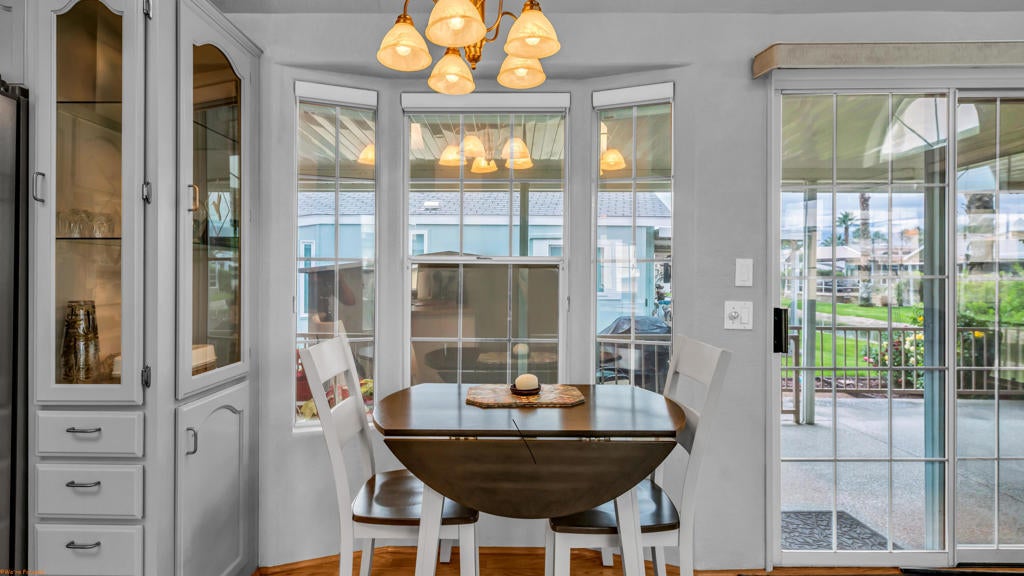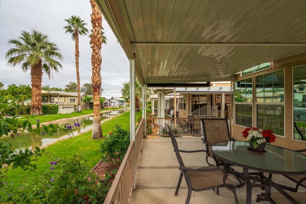 Desert Aire Resort Community is a 55+ adult park offering up to nine months of residency each year--ideal for a peaceful desert escape. This well-maintained home reflects the sellers' pride of ownership, with numerous upgrades that make it truly stand out. Enjoy outdoor living on the expansive wraparound patio deck, where you can relax and take in tranquil views of the stream below.This beautifully gated community features an impressive array of amenities, including a 9-hole par-3 golf course, 18-hole putting green, pickleball courts, horseshoe pits, pool tables, library, hiking trails, a fully equipped workshop, water volleyball, and an exercise room.You own the space (fee simple).This is a no pet development