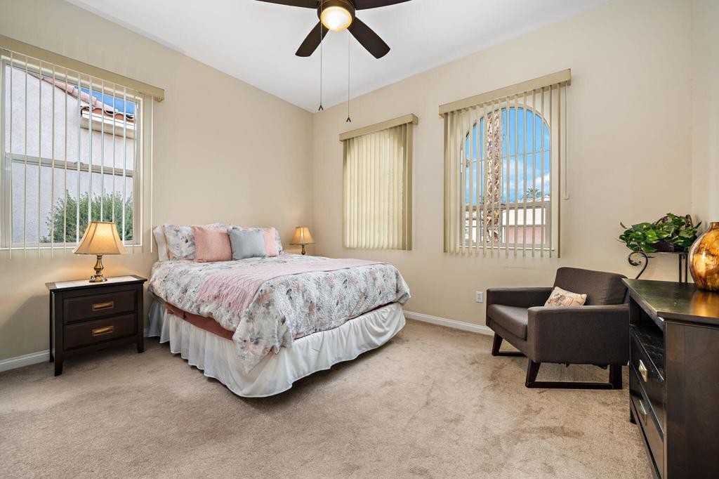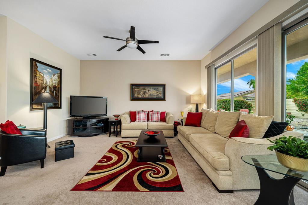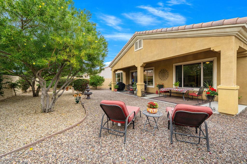 Welcome to this beautiful Avalino residence in Del Webb's premier 55+ active adult community, Sun City Shadow Hills. This 1,763 sq ft home is being sold FURNISHED (per inventory), offering an effortless transition to full-time living or seasonal enjoyment. The thoughtfully designed layout features two well-separated bedrooms, one with an en-suite bathroom, a versatile den/home office/3rd bedroom, and a spacious 2-car garage, providing functionality and convenience.Once outside, you'll enjoy an oversized private backyard with low-maintenance landscaping, fruit trees, a large covered patio, and plenty of space to add a pool and spa--perfect for relaxing, entertaining, or creating your own desert oasis. The open-concept living and dining areas flow seamlessly, ideal for hosting friends and family or enjoying quiet evenings at home.Sun City Shadow Hills offers an active, resort-style lifestyle with championship golf courses, tennis and pickleball courts, state-of-the-art fitness centers, sparkling pools, vibrant clubhouses, and a full calendar of social activities. Nestled in the stunning Coachella Valley near Palm Springs, this exceptional home combines comfort, convenience, and the perfect blend of relaxation and recreation for active adults.