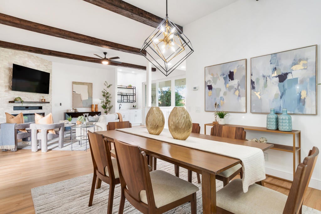 Beamed Ceilings, Breakfast Bar, Separate/Formal Dining Room, High Ceilings, Recessed Lighting, Bar, Main Level Primary, Multiple Primary Suites, Wet Bar