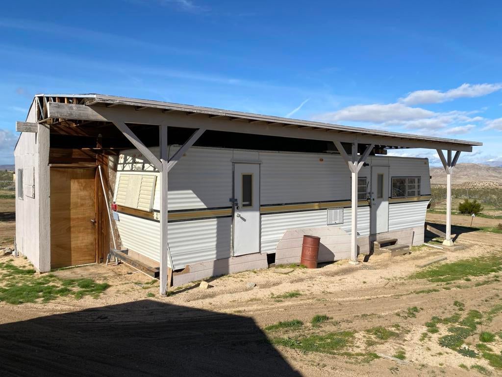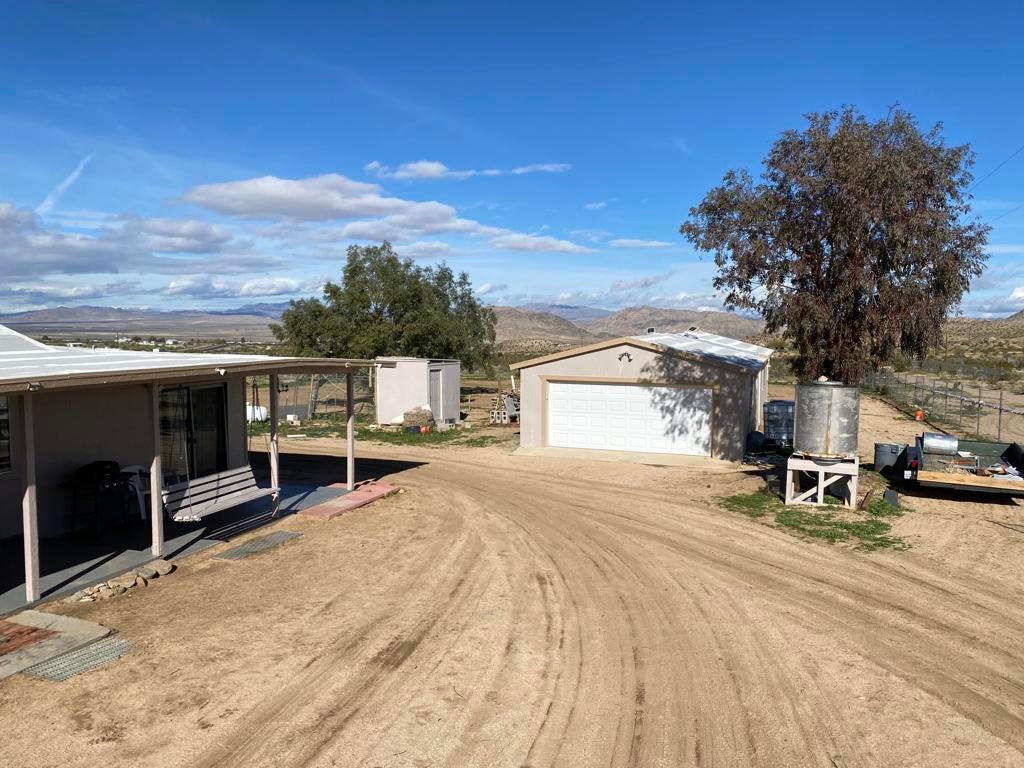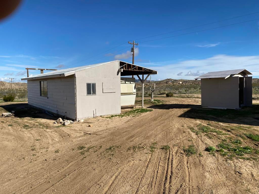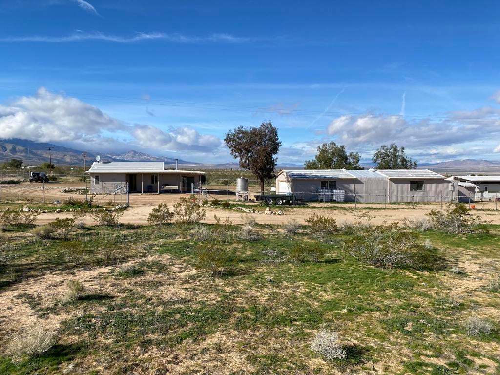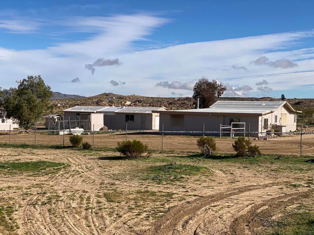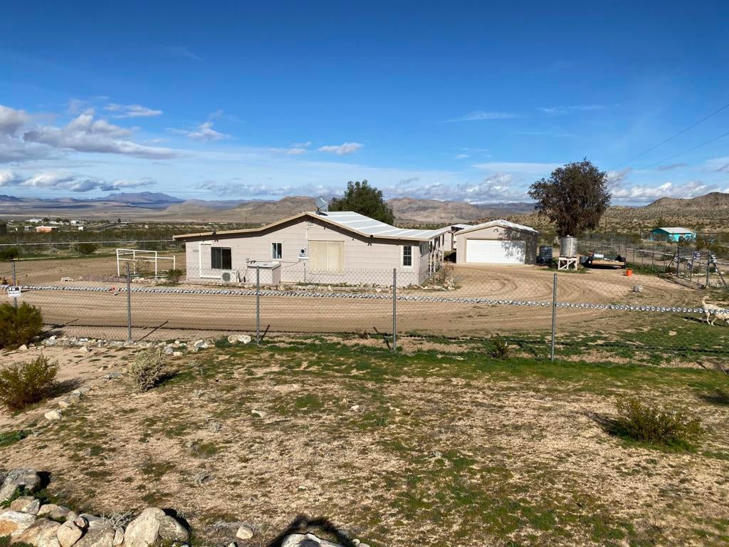 ONLY $235,000 for a home and all of this! Just minutes from Yucca Valley, Pioneertown, Joshua Tree and adjacent to Landers. Johnson Valley is home to Off-roading, wildlife, equestrian, livestock, hiking, shooting and just about anything else you can dream up to do in the Mojave Desert! FIVE ACRES WITH A WELL PLUS A TWO CAR GARAGE, LARGE SHOP, SHED & KENNEL, PLUS ANOTHER WORKSHOP OR TACK & TOOL ROOM! There is a significant area that is chain link fenced with gates to keep your pets and everything else behind a fence. Almost 1,500 square feet of home featuring two bedrooms plus one bath and a wing that could easily be a guesthouse. Kitchen plus dining space and living room plus a large family room with a wood burning stove. Two mini splits for air conditioning and heat. This property is a very short drive from the Hwy and the road is nice. All of your shopping in Yucca Valley is just 20 minutes away. Apple Valley is 45 minutes the other way and Big Bear is just 45 minutes up the hill! The last two photos show the approximate lot lines, the chain link fence line and proximity to the Hwy.