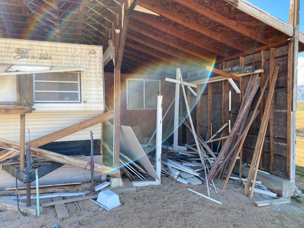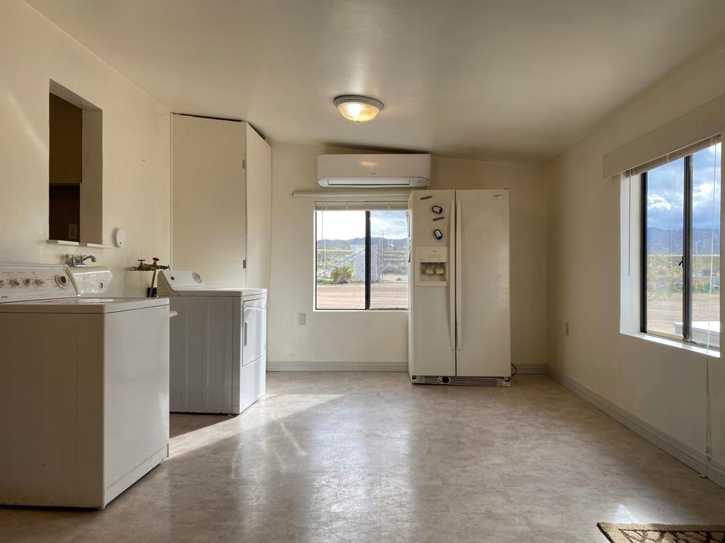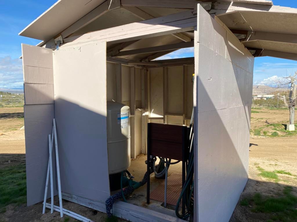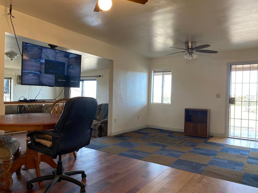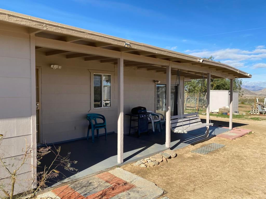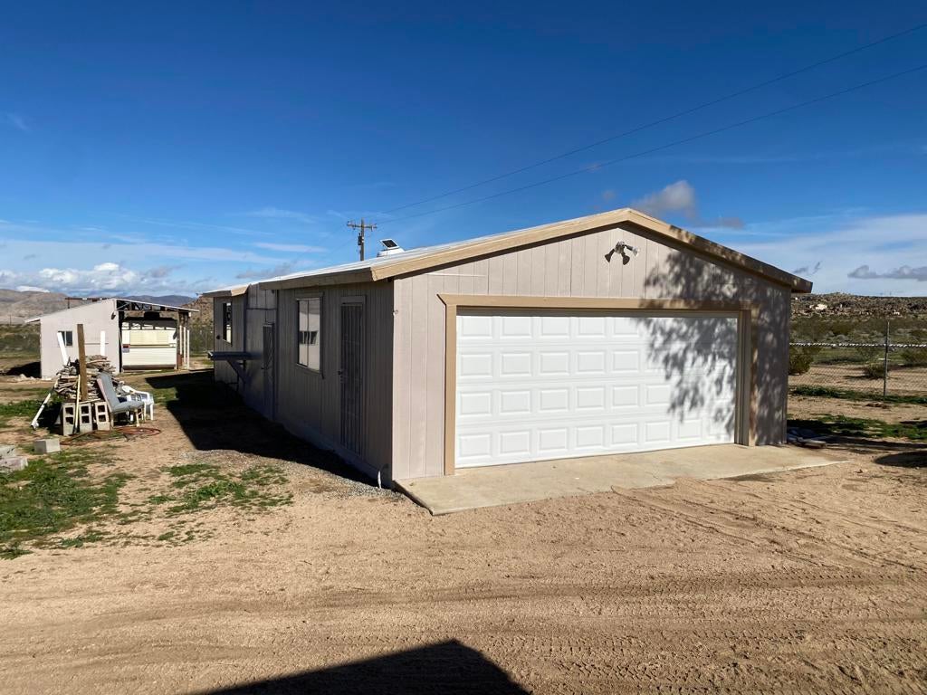 ONLY $235,000 for a home and all of this! Just minutes from Yucca Valley, Pioneertown, Joshua Tree and adjacent to Landers. Johnson Valley is home to Off-roading, wildlife, equestrian, livestock, hiking, shooting and just about anything else you can dream up to do in the Mojave Desert! FIVE ACRES WITH A WELL PLUS A TWO CAR GARAGE, LARGE SHOP, SHED & KENNEL, PLUS ANOTHER WORKSHOP OR TACK & TOOL ROOM! There is a significant area that is chain link fenced with gates to keep your pets and everything else behind a fence. Almost 1,500 square feet of home featuring two bedrooms plus one bath and a wing that could easily be a guesthouse. Kitchen plus dining space and living room plus a large family room with a wood burning stove. Two mini splits for air conditioning and heat. This property is a very short drive from the Hwy and the road is nice. All of your shopping in Yucca Valley is just 20 minutes away. Apple Valley is 45 minutes the other way and Big Bear is just 45 minutes up the hill! The last two photos show the approximate lot lines, the chain link fence line and proximity to the Hwy.