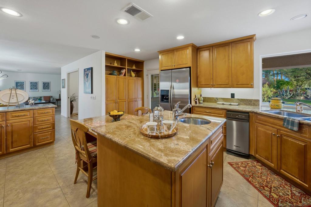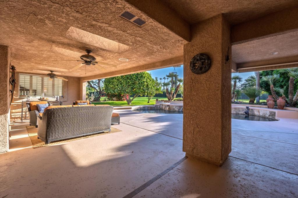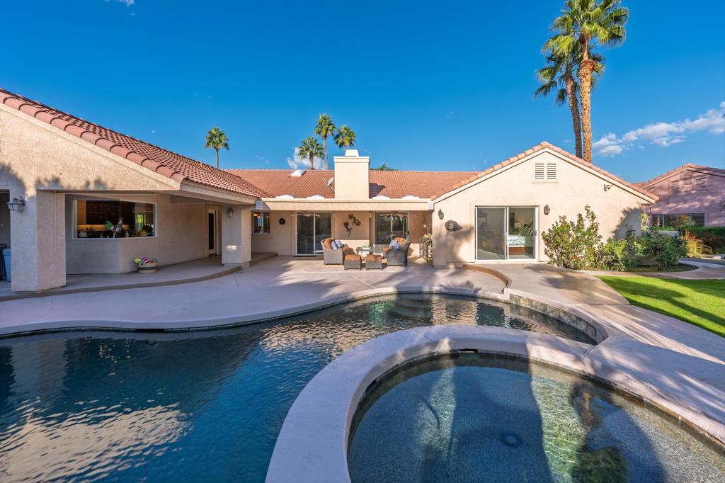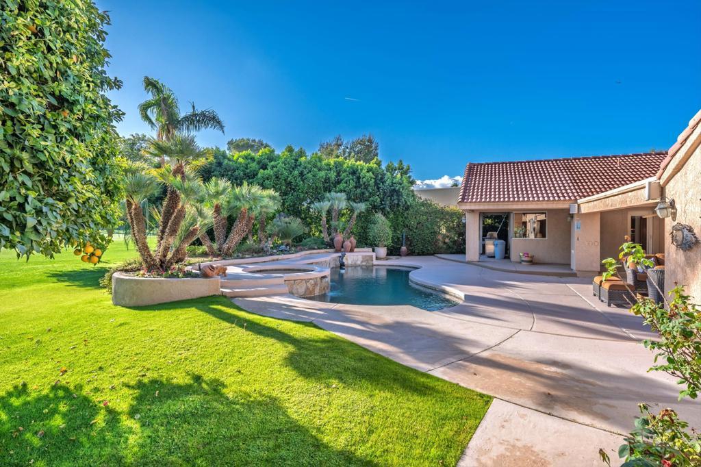 Welcome to 75951 Kimberly Lane, an exceptional single-story residence nestled in the heart of the Coachella Valley within the esteemed Historic Avondale Country Club. Perfectly positioned on a private cul-de-sac, this remarkable home boasts 3,488 square feet of thoughtfully designed living space on a generous 0.37-acre lot, offering both privacy and breathtaking views adjacent to the Par 4, second fairway of the Avondale Golf Course.As you arrive, a semi-circular driveway and courtyard entry set the tone for an impressive approach. Double entry doors welcome you into the expansive great room featuring vaulted ceilings, a cozy gas log fireplace, and an oversized wet bar -- ideal for entertaining friends and family. The open layout seamlessly connects living, dining, and social spaces while highlighting natural light and panoramic golf course views.This home offers 4 spacious bedrooms and 3 full baths, including a luxurious primary suite with dual closets and direct patio access -- a serene retreat at the end of the day. A large secondary suite lives as a private second primary, complete with its own patio area. The fourth bedroom is currently configured as a private office with a built-in Murphy bed -- perfect for work-from-home flexibility.The chef's kitchen impresses with granite slab countertops, stainless steel appliances, and a six-burner gas cooktop with hood -- a dream for culinary enthusiasts. Outdoor living is equally elevated with a pool and spa featuring a raised spa with waterfall, and a built-in BBQ for unforgettable alfresco gatherings. The breakfast nook also offers French doors that lead to a south patio. Additional upgrades include plantation shutters, fresh interior paint, and new ceiling fans throughout. Located in a rare part of Palm Desert with Imperial Irrigation District electrical service for lower energy costs. This home epitomizes refined desert living.