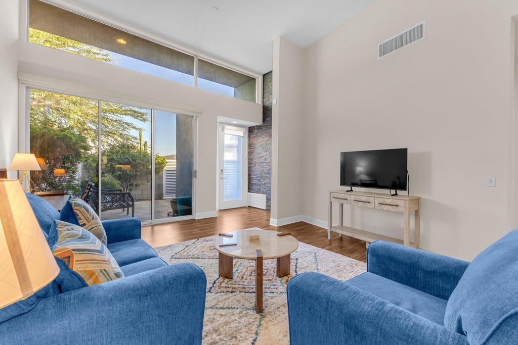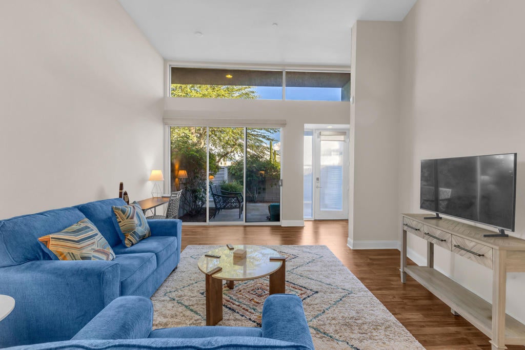 Seasonal lease in the desirable Palermo community just five minutes from Downtown Palm Springs available January 24th! This 1 bedroom, 1.5 bath condo offers a modern, light-filled layout with high ceilings, abundant natural light, and a private shaded carport conveniently located directly outside the unit. Residents enjoy ample guest parking and resort-style amenities including a fitness center, billiards room, co-working and study spaces, plus two separate heated pools and spas. Ideally situated with easy access to nearby hiking trails, the I-10 freeway, and a quick Uber ride to downtown dining, bars, and shopping. Owner prefers no pets; tenant is responsible for gas and electric while all other utilities are covered by owner. First month's rent and security deposit are due at signing, and all applicants must apply through RentSpree.