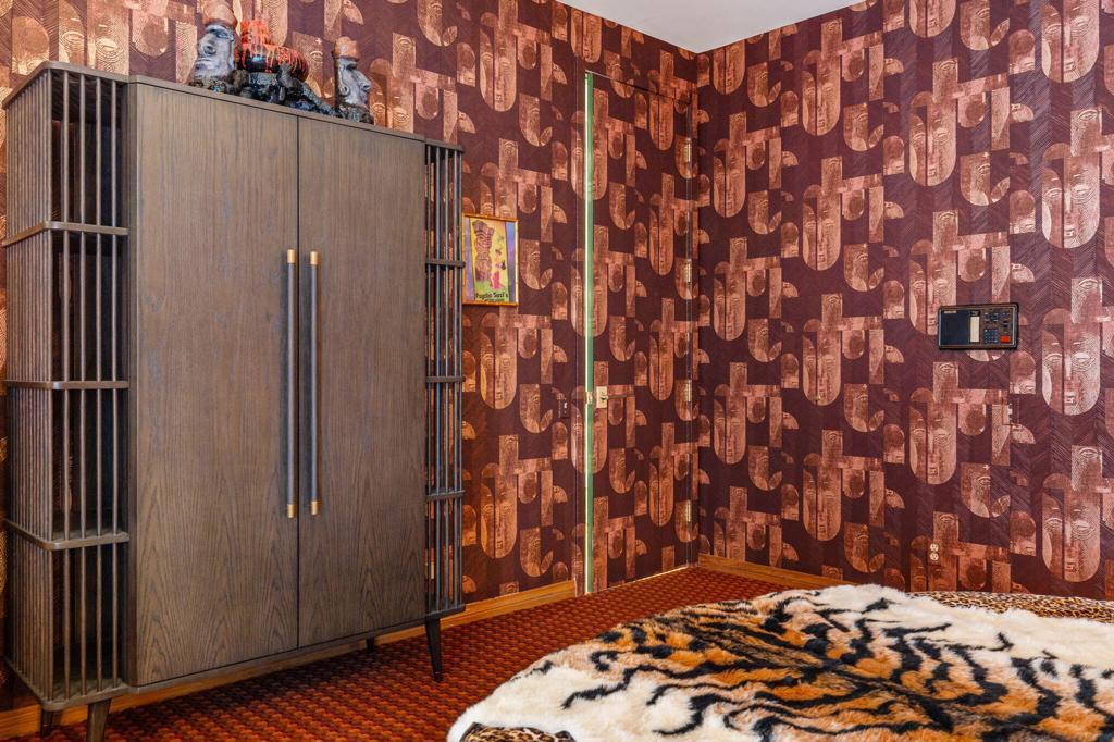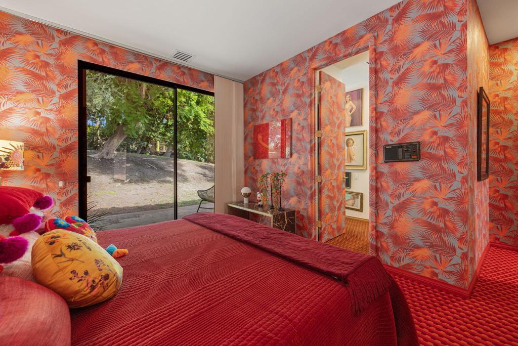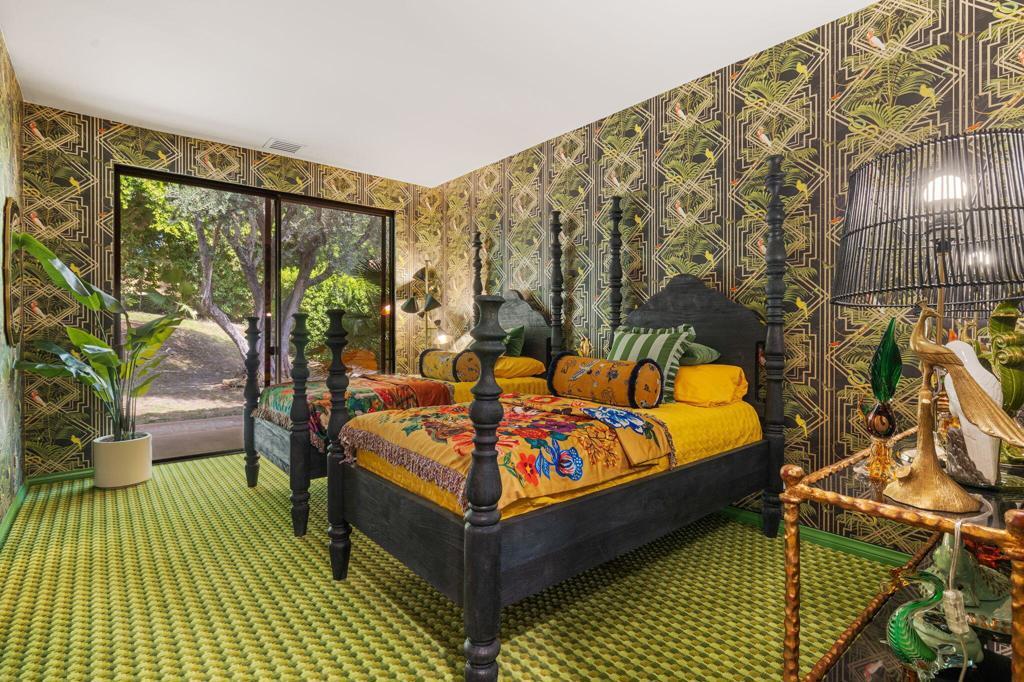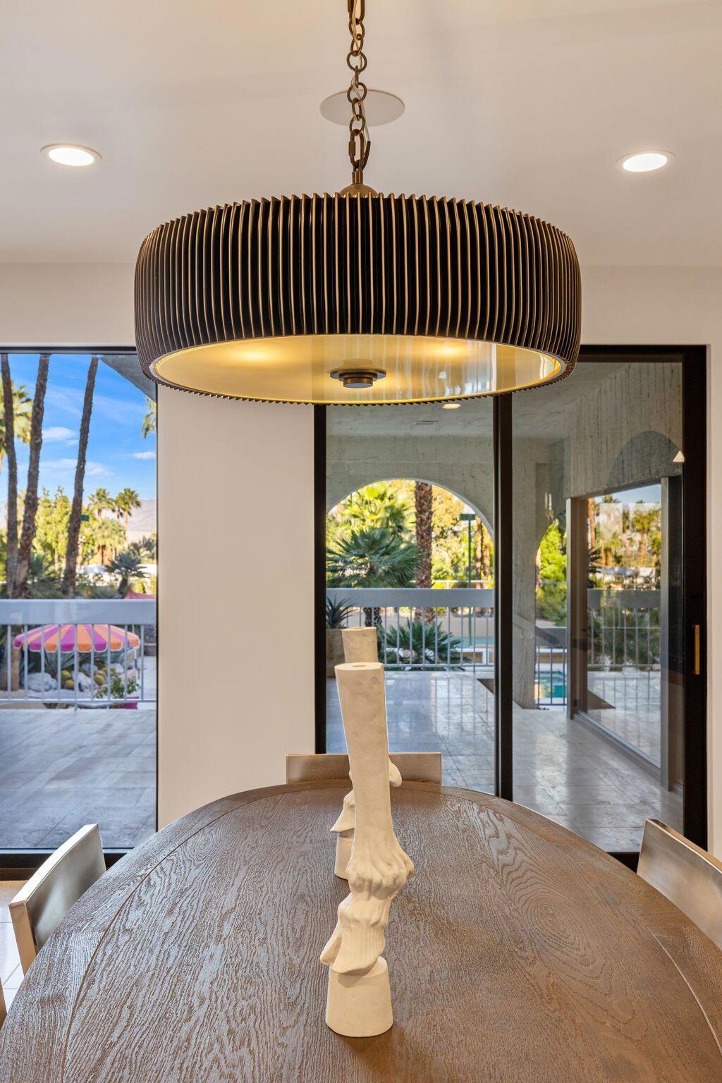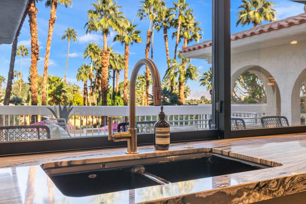 Offered TURNKEY with designer furnishings, decor, and sundries included! Opportunity for a move-in ready desert retreat. Perched at the top of a private cul-de-sac in the guard-gated enclave of Thunderbird Heights lies an expansive oasis that combines timeless architecture with artful design and modern luxury. This sprawling 6-bedroom, 5-bath estate a sanctuary created to inspire, entertain, and indulge. Reimagined by designer Leslie Bock and formerly owned by celebrated songwriter and music producer Michael Masser (and visited by Diana Ross, Barbara Streisand, Neil Diamond, and Whitney Houston) this home carries a legacy of creativity that resonates throughout. Every detail and space is designed to spark connection and wonder. The expansive living area is centered by a dramatic fireplace and retro-chic sunken conversation pit, flowing seamlessly into a sleek wet bar and dining area for lingering evenings with friends. The chef's kitchen is a showpiece boasting terrazzo flooring, floor-to-ceiling custom cabinetry, top-of-the-line appliances, and a large pass-through window to the upper terrace for effortless indoor-outdoor entertaining. Take a moment to relax in the glamorous Versace-wrapped atrium lounge, which feels like a modern-day salon in the French Riviera perfect for morning coffee or afternoon tea. The primary suite is an indulgent hideaway overlooking lush landscaping. It features a spa-inspired bath with a soaking tub, steam shower, sauna, dual vanities, a walk-through custom closet, and a private yoga room. Each ensuite guest room offers a curated, yet easily reimagined escape, and direct outdoor access through its floor-to-ceiling glass sliders. The lower level offers a massive rumpus room with kitchenette, poolside lounge and shower room, additional guest/staff room, laundry, and wine storage. Outdoors, experience a tropical wonderland. Multiple terraces with graceful arches provide both grand entertaining spaces and quiet corners. The resort-style backyard is a private paradise complete with a shimmering pool and spa, a sunken and fully lit tennis court, lounging and dining areas, fragrant fruit trees, irreplaceable Ficus, and more than 50 soaring palms swaying over your sun-soaked desert escape. 70663 Oroville Circle isn't just a residence it's a bold statement in luxury, lifestyle, and design, carrying forward a decades-long legacy of inspiration and creativity.