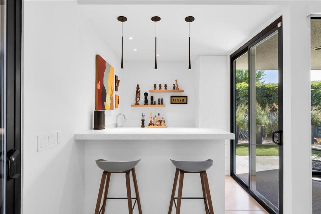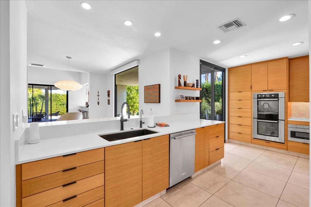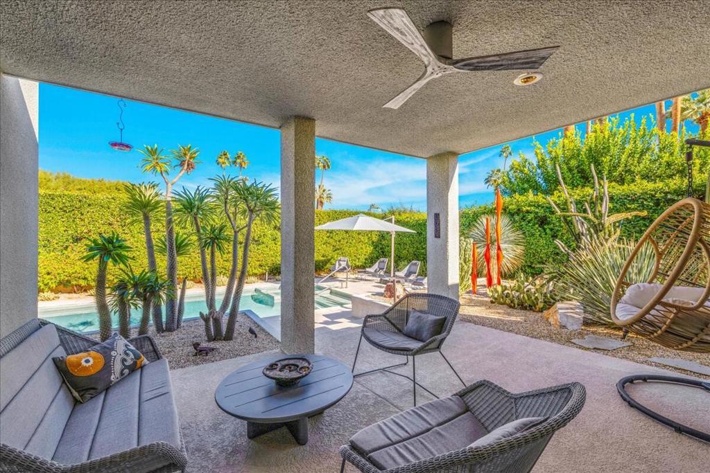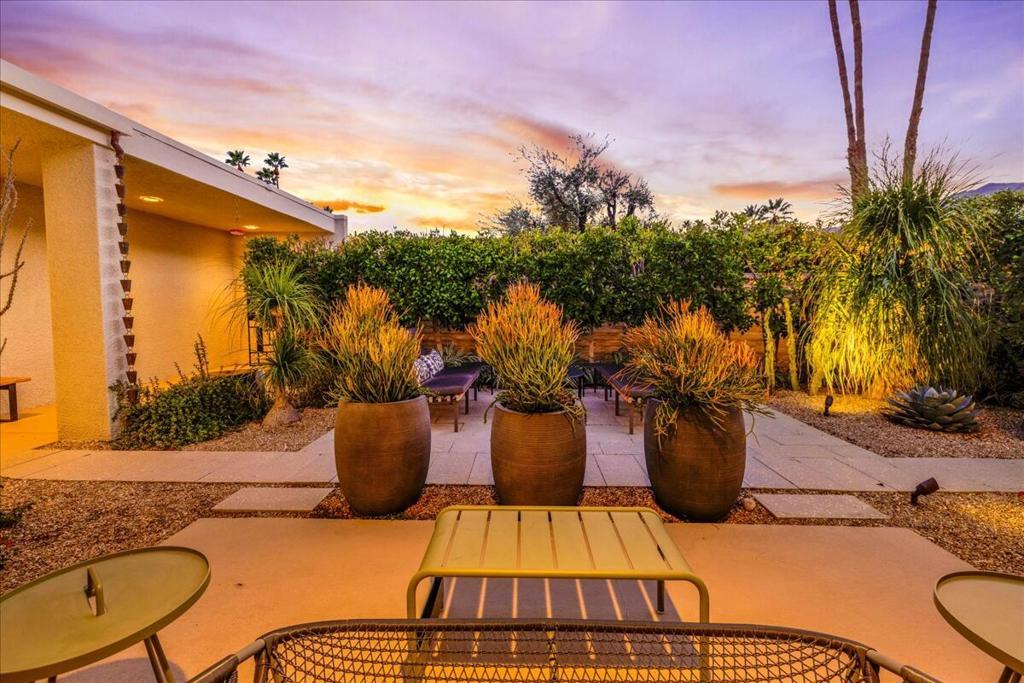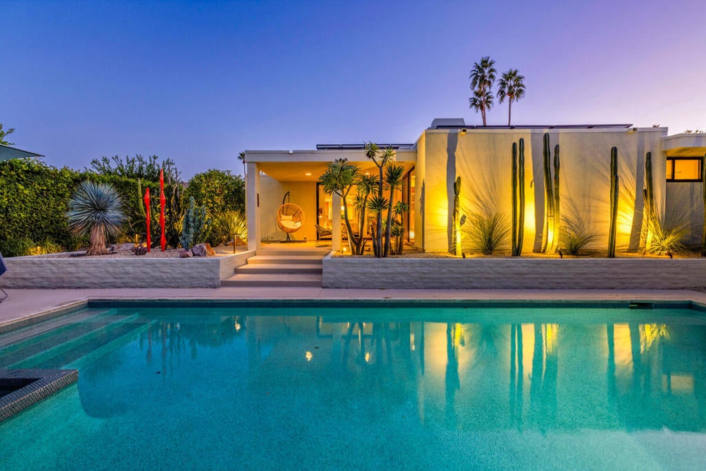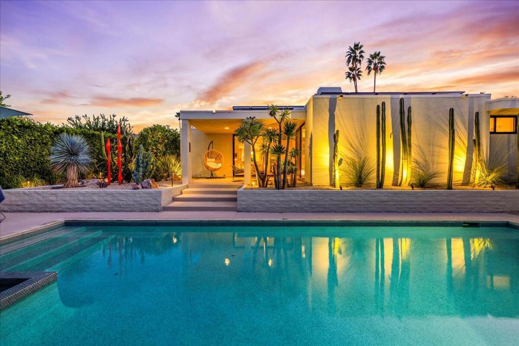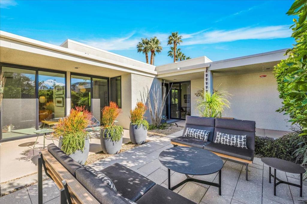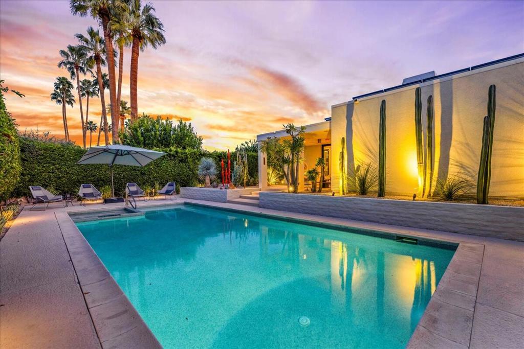 Style, location, privacy. It's rare to find a home that has everything you want. And here it is! Clean modernist lines, graciously sized rooms, a comfortable and livable floor plan, plenty of space to entertain, access to outdoor patios from every room, and your own, serene private pool and spa.Homes designed by renowned architect Laszlo Sandor seldom come to market ! And only a handful of homes within the Canyon South 5/Via Isla HOA have their own pools. And this is one of only 4 stand-alone homes in the community. The home is setback from the street with an expansive lawn. A gated entry leads to a private front patio. The grand glass door entry brings you to an expansive, open plan living area. Every surface in this home has been updated and upgraded. From the beautiful tile floors to the high end kitchen appliances. Walls of glass in every room drench the home in light. Mountain views from nearly every room. The solar panels on the roof are fully owned! And you own the land, too. The best part of this home, however, may be the front and rear patios and the sparkling private pool. Luxuriate in your new-found Palm Springs retreat! Mix cocktails for your guests. Relax by the fireplace. Float in your private pool. This is the lifestyle you will lead. Canyon South 5's community amenities include two pools, spas, tennis and pickleball courts, and beautifully manicured grounds, adding to the unmatched lifestyle you will lead.The Twin Palms neighborhood is one of the most desirable areas in town and close to everything you love to do in Palm Springs. Don't miss your opportunity to make this rare gem your own Palm Springs retreat! Make an appointment to see it today.