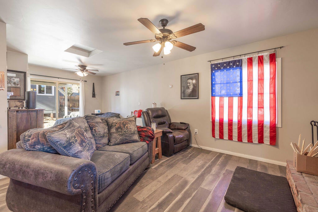 Almost New turn key home! Double lot to be able to add on if wanted. Dont let the size scare you away. It has been totally redone. New electric panel, Rinnai heater, 40 gal water heater, newer roof and fully insulated and newer fridg. Close to the National Forest. This is the cutest home you have seen in a long time! Wall was removed from bedroom to make an open area feel, but so nice and cozy. Bathroom is very nice. Has a washer dryer combo that fits into the closet. 3 Large sheds on the lot which one is 120sq ft and used as a gym, but could be turned into anything you would like, the other is a wood shed and then a storage shed. Completely fenced yard. Driveway. Newly painted! The amount of care that the current owner has put into this home is amazing. Call for an appointment today!