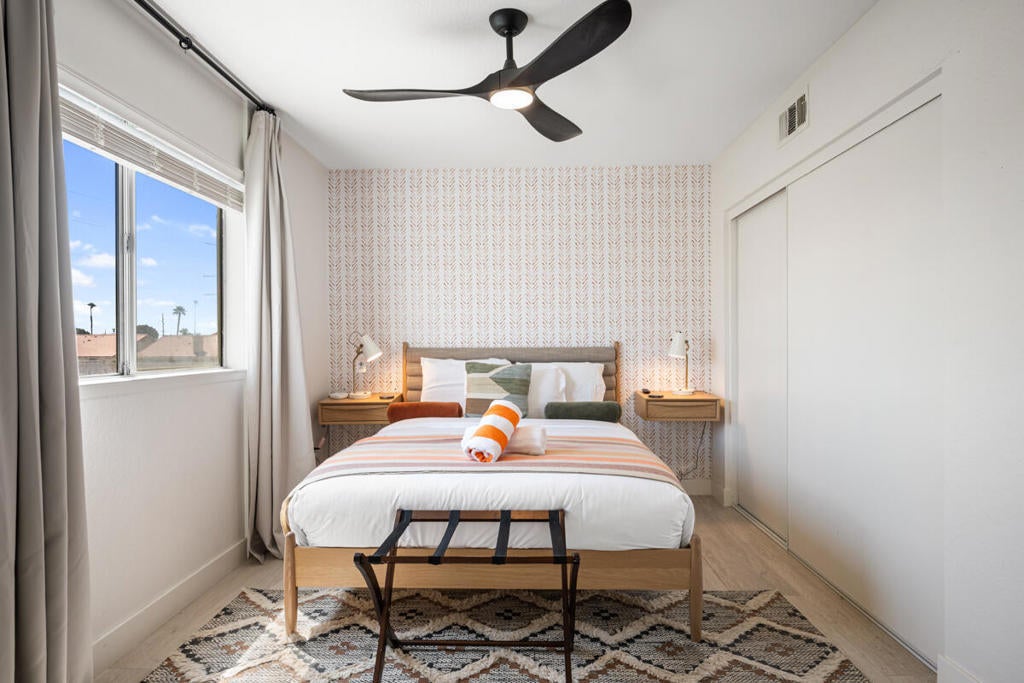 Welcome to a rarely available 5-bedroom, 4-bath home with no HOA! This property offers a luxurious interior and is currently a highly desirable short-term rental with many future bookings that can transfer to the new owner--making it the perfect blend of investment and personal getaway. Enjoy the resort-style backyard with a newly re-plastered sparkling pool & spa, built-in BBQ island, covered dining space, putting green, and incredible mountain views. Inside, the light and bright open floorplan features completely remodeled upstairs and downstairs bathrooms with custom tile showers, new vanities and smart toilets! The spacious kitchen boasts granite counters, two-toned cabinetry with brass hardware, and new stainless steel appliances, opening to the dining room and backyard for seamless entertaining. The inviting living room features a cozy fireplace, while a main-level bedroom with en suite bath provides flexibility for guests. Upstairs, discover four additional bedrooms, including a spacious primary suite with dual vanities and a high-end hotel feel. With updated bathrooms throughout, RV parking, and an attached 2-car garage, this property is move-in ready. Whether for personal use or as a lucrative STR, this Indio home captures the best of desert living.