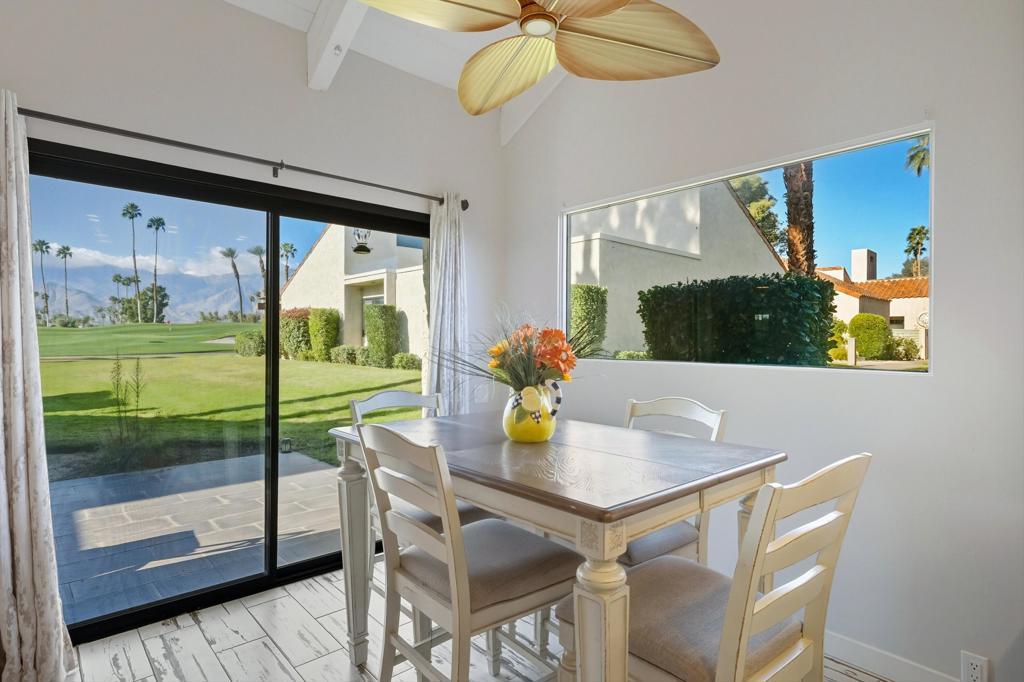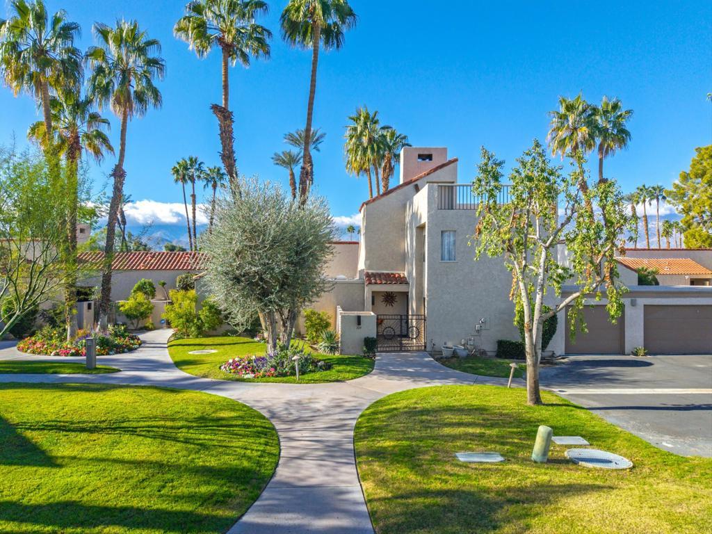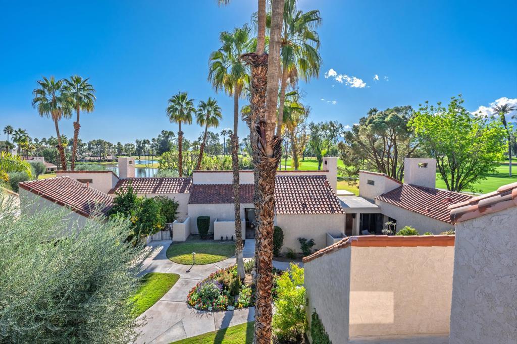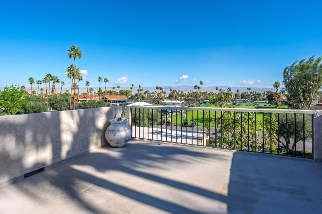 Recently remodeled, this stunning 2-bedroom, 2-bath condominium is ideally located in the sought-after Tennis Villas at Mission Hills Country Club. Vaulted ceilings and a fireplace anchor the spacious living room, creating an open and inviting atmosphere filled with natural light.The dining area flows effortlessly from the living space and features a convenient pass-through to the beautifully upgraded kitchen, ideal for both everyday living and entertaining. Guests will enjoy the oversized guest bedroom with its own en-suite bath, while the expansive primary suite offers a peaceful retreat with a large, updated bathroom complete with a walk-in shower and spa tub.Take in breathtaking panoramic views of the Santa Rosa and San Jacinto Mountains from the private rooftop deck. Additional outdoor living includes a secluded back patio with mountain and golf course views--perfect for relaxing, entertaining, and enjoying the desert lifestyle year-round.Conveniently located near shopping, dining, and entertainment.