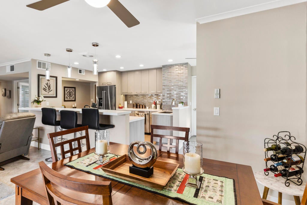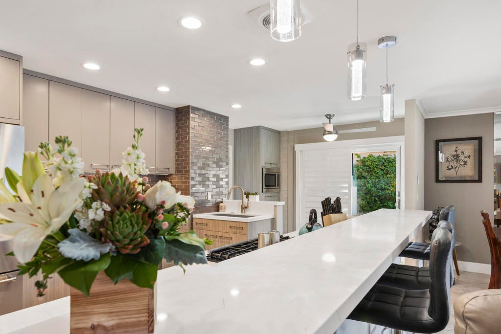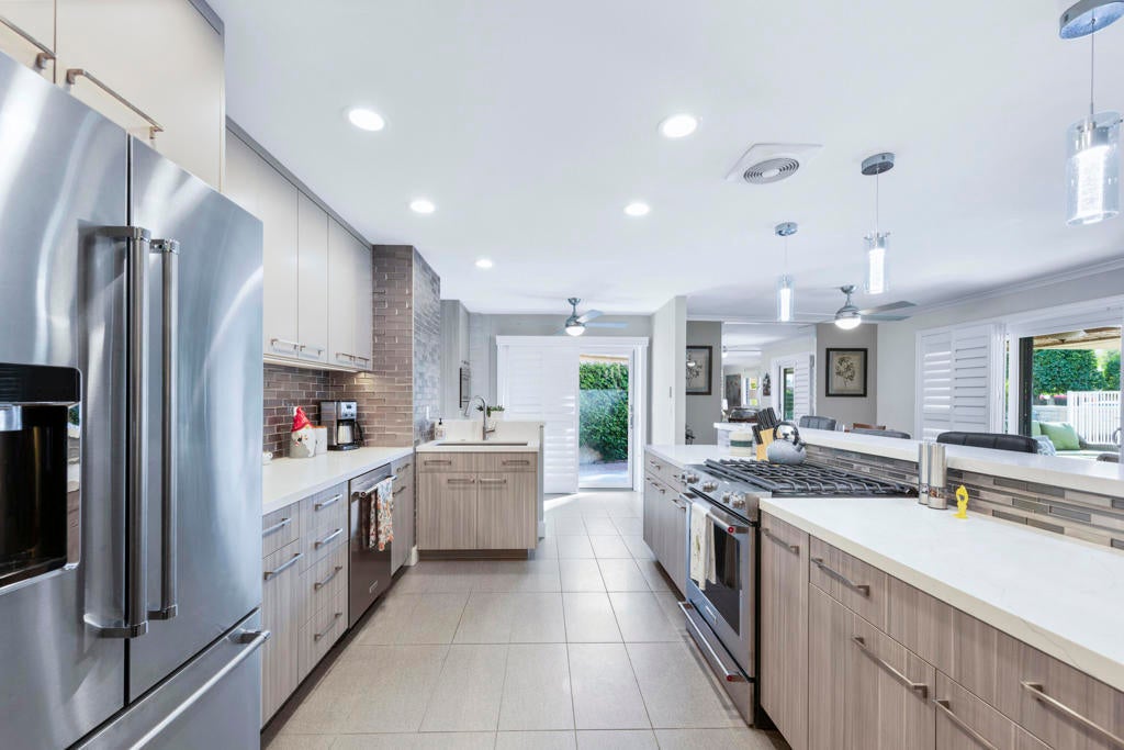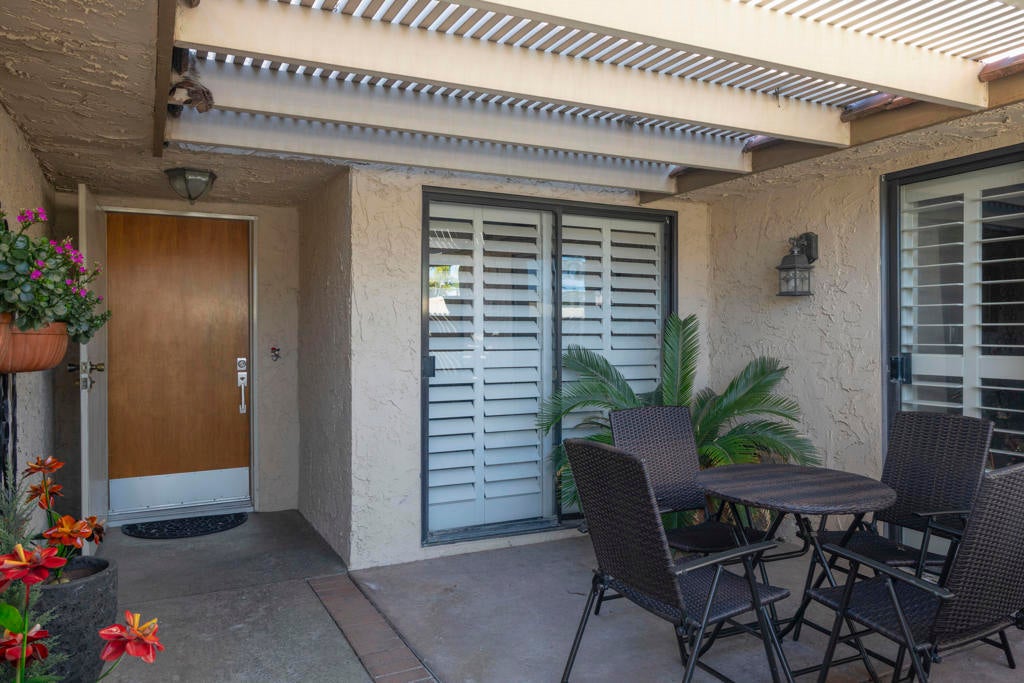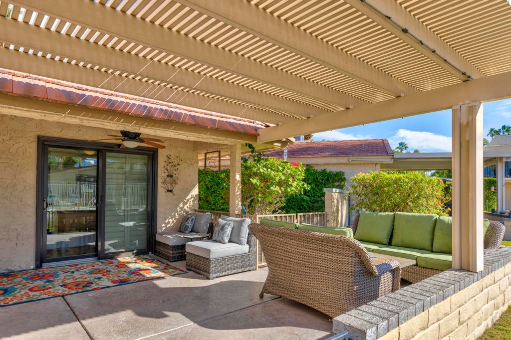 This stylish 1.550 sqft home is turnkey furnished and absolutely move-in ready - You are going to love the 2022 updated and freshly remodeled open concept kitchen with high-end cabinetry, coutertops and flooring with all new appliances. Enjoy beautiful pool and mountain views throughout the living area with ample outdoor seating under the covered lanai. The expansive primary bedroom, with patio access, boasts an upgraded en suite and has plenty of closet space. The den can easily be used as an office or 3rd bedroom for guests. Newer HVAC (2020) Newer water heater (2020) with 2 updated high-quality dual pane sliders by Anderson. Everything in this retreat home has been very well maintained with exceptional attention to detail. Whether you are looking for a gorgeous new place to call home or seeking a polished 2nd home- This is the one you have been waiting for! Cathedral Canyon Country Club is a centrally located gated community that boasts an 18-hole golf course, tennis courts with multiple pools and spas for your enjoyment!