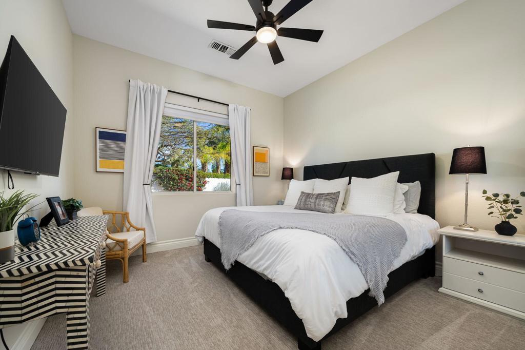 Located within the prestigious Mission Hills Legacy community of Rancho Mirage, this fully remodeled golf course residence offers breathtaking mountain and fairway views in a light, bright, and elegant setting. Designed for both comfort and flexibility, the home features a private two-room detached casita complete with a full kitchen and its own laundry, ideal for guests, extended family, or a private office retreat.The main residence has been thoughtfully updated with a fresh, airy aesthetic, showcasing modern finishes, abundant natural light, and seamless indoor-outdoor living. Enjoy expansive views of the golf course and surrounding mountains, creating a serene desert backdrop from multiple living spaces.A three-car garage provides ample storage and convenience, perfect for golf carts, vehicles, or additional workspace. Situated on the golf course within a gated, resort-style community, this home offers access to world-class amenities, championship golf, and the best of Rancho Mirage living.This is a rare opportunity to own a fully remodeled property with exceptional guest accommodations, stunning views, and timeless appeal in one of the desert's most sought-after communities. Legacy HOA includes Mission Hills Country Club social/fitness membership