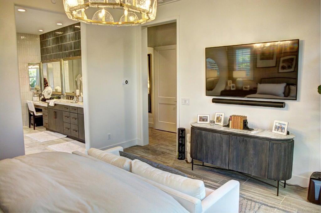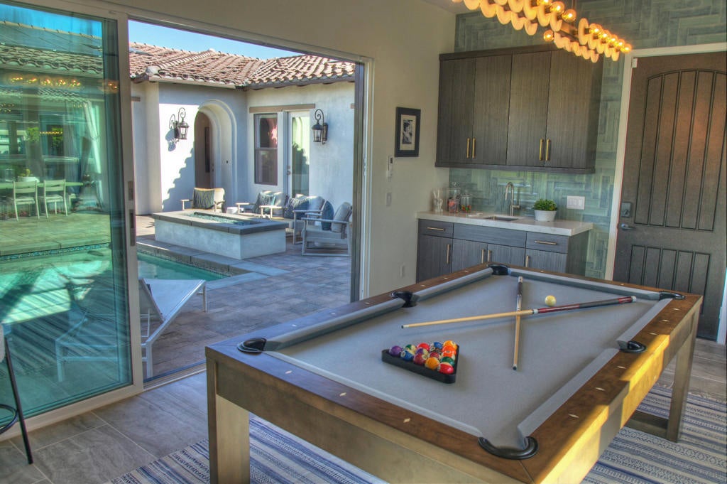 : Former Lennar Model Home with Casita and owned Solar! Located in the Province, a premier location of Indian Wells, this former Lennar model home has over $340,000 in flooring and interior upgrades at Builder cost! With floor, wall and ceiling treatments not found in a production home, this stunning home has an unmatched presence. Built around the custom pool and spa, the entertaining potential is truly notable, with covered outdoor dining . The entryway leads you past the detached casita and pool area to the main entry, where the well thought out floorplan takes over. All three interior bedrooms are en-suite with the primary suite well-separated from the secondary rooms. Designed for the desert indoor-outdoor lifestyle , this home opens up to the custom pool/spa and patio area through large sliders in the living room, a bar area that opens dramatically from the interior to the outside for serving and conversation along with doors from the 3rd bedroom and Casita. Designer furnishings available. for purchase