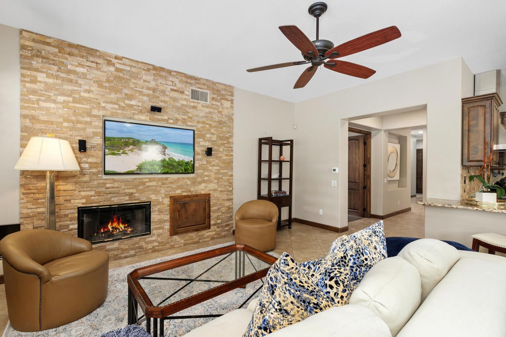 Welcome to 207 Kavenish Dr. Experience the best of desert resort living at this private and peaceful retreat, perfectly positioned on the fairway with breathtaking golf course views. Located within the highly desirable, 24-hour guard-gated Rancho Mirage Country Club. This elegant single-level residence features three bedrooms, one is being used as a den/office, but could easily be turned back into a bedroom, and three bathrooms, including an oversized primary suite with a spa-like ensuite, large walk-in closet and direct access to the outdoor patio overlooking the fairway. A custom door entry opens to tall ceilings and a spacious, open-concept layout that flows effortlessly from the living and dining areas to the outdoors. The expansive great room showcases a floor to ceiling stacked stone gas fireplace and walls of glass framing stunning golf course views, while the bright kitchen faces east, welcoming soft morning light. The third bedroom has a full ensuite bath, and the large laundry room and two-car garage (plus golf cart space) provide everyday convenience. The standout features of this home include custom doors throughout, remodeled kitchen, and bathrooms, solar and of course the large, walled and private patio--professionally landscaped and designed for both entertaining and relaxation, multiple seating areas offering the perfect blend of privacy and connection to the fairway. Just a few homes down from one of the four community pools, this property offers both tranquility and easy access to resort-style amenities including a private 10-hole golf course, multiple pools and spas, and lush greenbelts throughout. Ideally situated minutes from Eisenhower Medical Center, The River, and El Paseo's dining and shopping, this home offers a rare blend of comfort, convenience, and value. This home won't last long--its exceptional value and serene fairway setting make it one of the most compelling offerings in Rancho Mirage.
