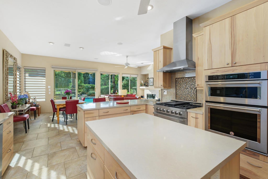 Welcome to 223 Kavenish Dr. Experience the best of desert resort living at this private and peaceful retreat, perfectly positioned on the fairway with breathtaking golf course and pool/spa views. Located within the highly desirable, 24-hour guard-gated Rancho Mirage Country Club. This elegant single-level residence features three bedrooms, three bathrooms, including an oversized primary suite with a spa-like ensuite, large walk-in closet and direct access to the large outdoor patio overlooking the fairway and pool. A double door entry opens to tall ceilings and a spacious, open-concept layout that flows effortlessly from the living and dining areas to the outdoors. The expansive great room showcases a gas fireplace and walls of glass framing stunning golf course and pool views, while the bright kitchen faces east, welcoming soft morning light. The third bedroom has a full ensuite bath, and the large laundry room and two-car garage (plus golf cart space) provide everyday convenience. The standout features of this home include a fully remodeled kitchen with high-end stainless steel appliances, owned solar, the hallway remodeled guest bath shower, and of course the stunning pool and spa, fenced and private patio--professionally landscaped and designed for both entertaining and relaxation, multiple seating areas offering the perfect blend of privacy and connection to the fairway. Just a few homes down from one of the four community pools, this property offers both tranquility and easy access to resort-style amenities including a private 10-hole golf course, multiple pools and spas, and lush greenbelts throughout. Ideally situated minutes from Eisenhower Medical Center, The River, and El Paseo's dining and shopping, this home offers a rare blend of comfort, convenience, and value. This home won't last long--its exceptional value and serene fairway setting make it one of the most compelling offerings in Rancho Mirage.