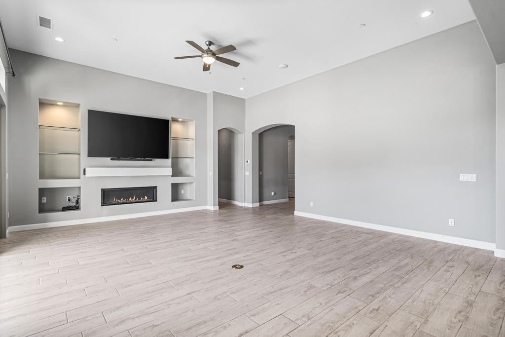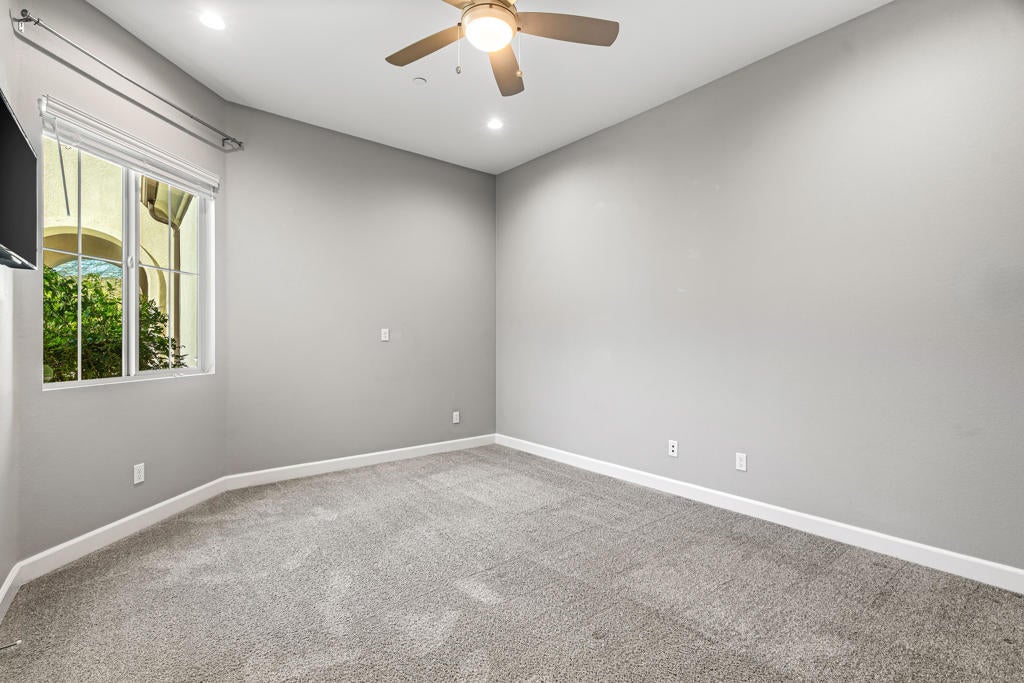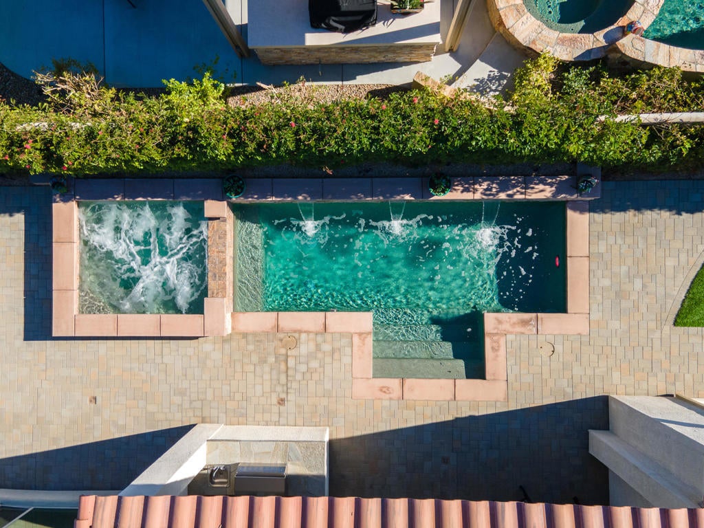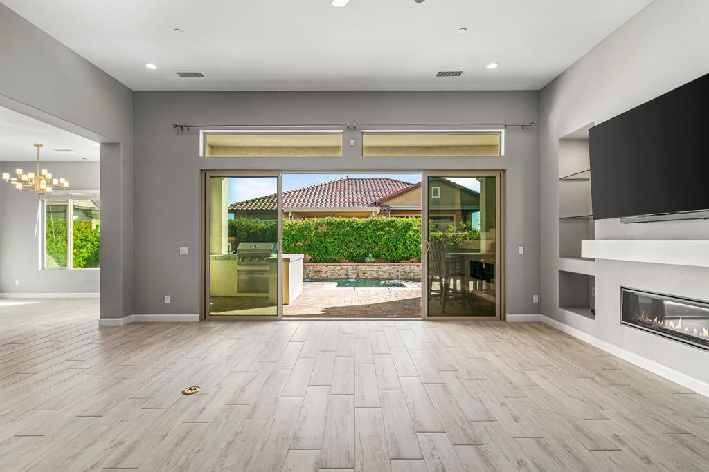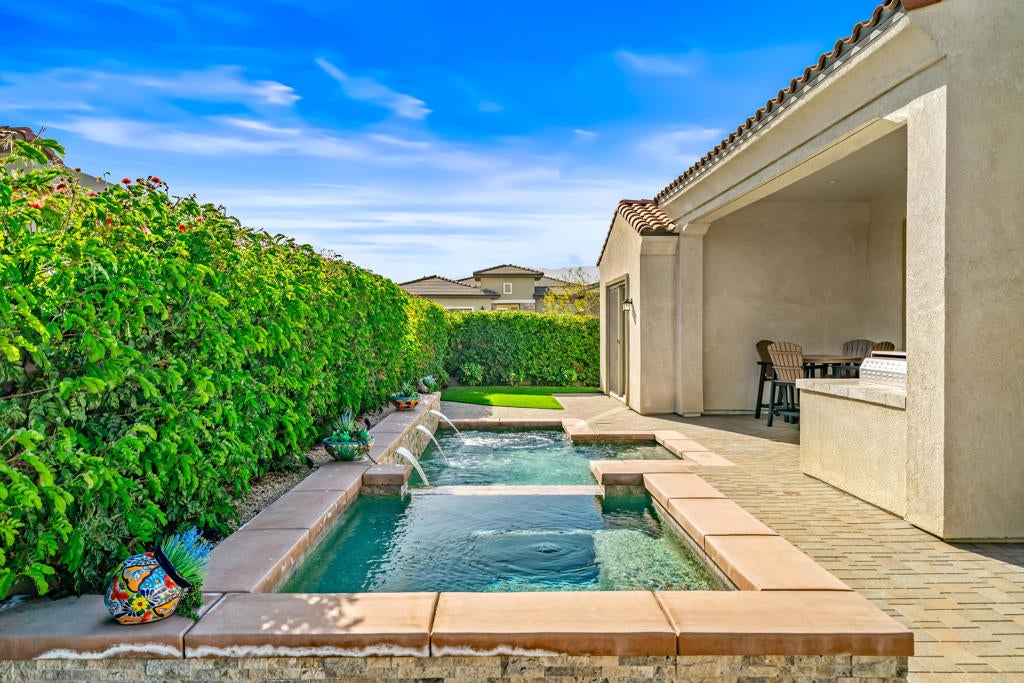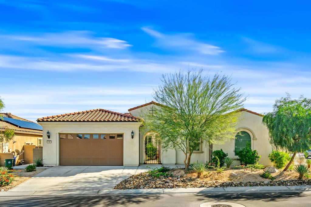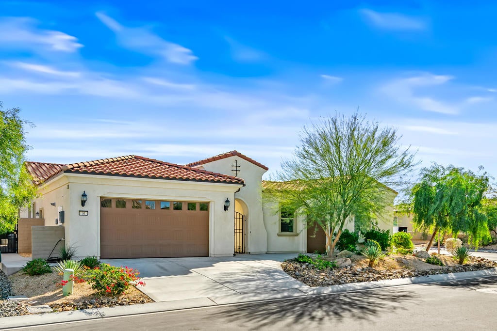 This is the one you've been looking for - offering exceptional value in Del Webb Rancho Mirage, the desert's premier 55+ community. Immaculate in condition, luxuriously appointed, an entertainer's dream, and truly like new. Ideally positioned as the first home upon entering a private cul-de-sac block, this immaculate residence sits on an oversized, ultra-private corner lot in one of the most desirable locations within Del Webb Rancho Mirage. A direct walking path leads straight to the clubhouse, offering exceptional convenience while maintaining privacy. This beautifully upgraded and pristine 'Journey' floor plan offers generous scale, an open layout, and light-filled interiors. The home feels as though it has never been lived in, reflecting meticulous care and exceptional condition throughout. The expansive open-concept kitchen anchors the living space and features high-quality cabinetry, quartz countertops, KitchenAid appliances, and a walk-in butler's pantry with wine refrigerator. The spacious owner's suite has been thoughtfully elongated and includes dual vanity areas and a large walk-in shower. A separate two-bedroom guest suite with its own exterior entrance creates the feel of an attached casita. A large bonus room offers versatile use as a formal dining room, media room, or home office. The main living areas feature faux wood-grain wide-plank porcelain tile flooring, while the bedrooms feature high-end carpeting. Additional highlights include custom cabinetry in the guest bedroom and garage, an oversized laundry room with sink and folding area, and smart-home technology allowing remote control of the security system, door locks, thermostats, and pool equipment. The very private backyard is designed for entertaining, featuring a large covered patio, outdoor kitchen with built-in BBQ and plumbed bar sink, and a saltwater pool and spa with waterfalls and a custom fire pit. Low-maintenance desert landscaping completes the space. The oversized two-car garage plus golf-cart garage includes a Level-2 EV charger, mini-split A/C, tankless water heater, and a Pelican salt-free whole-home water filtration and UV system. Energy efficiency is enhanced by 33 owned solar panels, grandfathered into NEM 2.0. Del Webb Rancho Mirage is a premier 55+ gated community offering pools, spas, pickleball, tennis, putting greens, fitness center, golf simulator, clubhouse, ballroom, and more. Best of all You own the land (no land lease) and enjoy low HOA fees.