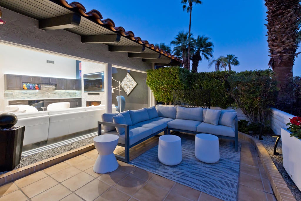 Perched above the valley in the guard gated Thunderbird Villas community, this beautifully reimagined 3 bedroom, 3 bath retreat is the epitome of stylish desert living with the mountain and city light views every homeowner hopes to find. Completely renovated with high-end upgrades to wallpaper, carpet, and paint, the Villa pairs designer level finishes with an effortless, modern aesthetic.An open, light filled floor plan connects the spacious living and dining areas to an updated kitchen and sleek contemporary baths. Each of the three generously sized bedrooms features its own private bath, creating an ideal layout for hosting friends and family with comfort and privacy.Outdoors, multiple patios capture both sunrise and sunset, offering spaces for morning coffee and evening cocktails. The Villa is just steps away is one of the community's 15 sparkling pools and with the HOA maintaining landscaping, exterior and pool maintenance, this is truly lock and leave living. Residents also enjoy golf cart access to the legendary Thunderbird Country Club and are minutes from dining, shopping, hiking, and the boutiques of El Paseo, all while tucked into a tranquil, elevated setting far from gate traffic.A rare opportunity to own a fabulous villa in one of the desert's most desirable communities.