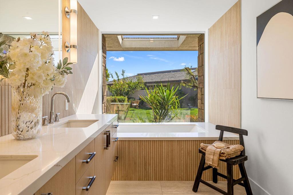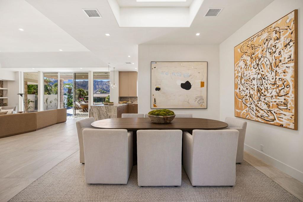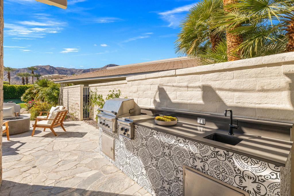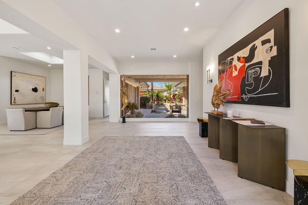 In Escrow in record time! Welcome to the spectacular residence of 9 Regency Drive, located in the prestigious Morningside Country Club in Rancho Mirage. This nearly 5,000 sq/ft 4 Bed, 5.5 Bath South facing fully remodeled and redesigned home is the latest premier home designed by the team at Chaz Stevens Design, based out of Los Angeles and Palm Springs. This free-standing lake front home is situated on one of the largest lots in the community with a completely re-designed and engineered pool that overlooks the stunning Southern Santa Rosa Mountain range. From the moment you walk in you will experience a unique glass enclosed zen garden with cascading waterfall and bubbling fountain. An open floor plan highlighted by a soaring great room, custom fireplace, modern bar, and dining room that easily accommodates 8.The home features: 2' x 4' tile throughout, custom built Italian designed cabinetry, a large chef's kitchen with an island, secondary sink, and peninsula, wall oven, 6-burner commercial range, and a brand new Sub-zero paneled refrigerator. This home is the epitome of modern living with a huge primary suite including fire place with sitting area. The separate primary bathrooms have their own showers, closets, and water closets - providing a spa-like experience (one of the bathrooms features a free-standing soaker tub). Lovely views of the private gardens can be enjoyed from both primary bathrooms. Multiple entertaining areas complete the backyard space, with a gas fire pit and a built-in bbq kitchen with outdoor motorized, retractable awnings. This is the ultimate home for those who like to entertain and/or are avid art collectors. With no expense spared, this home has been transformed to quite possibly one of the best homes in the Morningside community. Call today to schedule your own private showing.