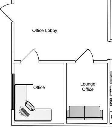 This office space has a welcoming reception/lobby area and two private offices with plenty of parking.