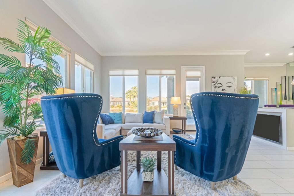 Welcome to this beautiful 3BD/3BA home in the gated community of Mission Shores. With 2,102 square feet of living space, this home offers a spacious open floor plan, perfect for entertaining, with a seamless flow between the living, dining, and kitchen areas. The updated kitchen features Quartz countertops, a large island, and ample storage. Enjoy breathtaking lakefront views from the comfort of your home, poolside, or on the patio, with stunning water vistas visible throughout. The serene lakefront setting provides a peaceful retreat while you relax in your private pool and spa. The bathrooms have been thoughtfully updated with beautiful modern finishes. Additional features include a 2-car garage, offering both convenience and storage. This home also includes high ceilings, recessed lighting, and large windows that bring in natural light, creating a bright and welcoming atmosphere. Located in a sought-after community, this home offers the perfect blend of luxury, comfort, and waterfront living. Don't miss this exceptional opportunity!