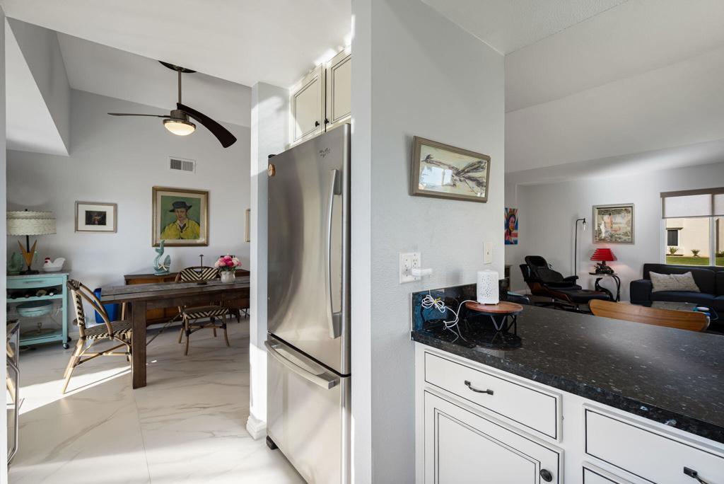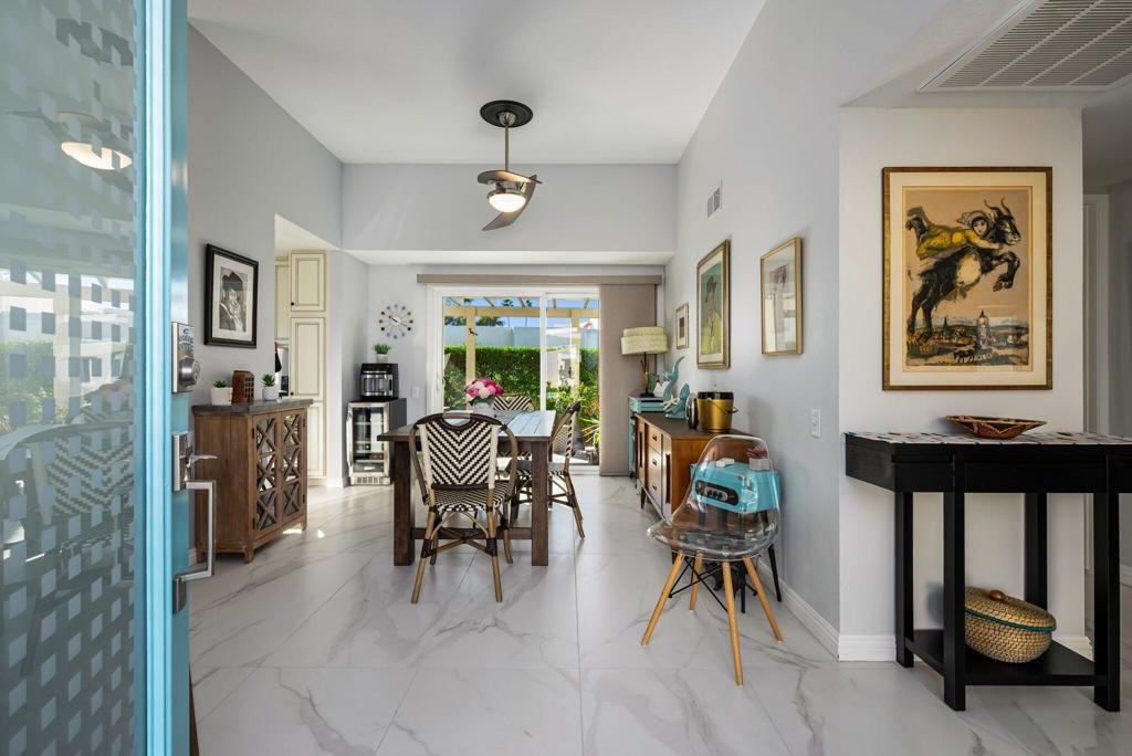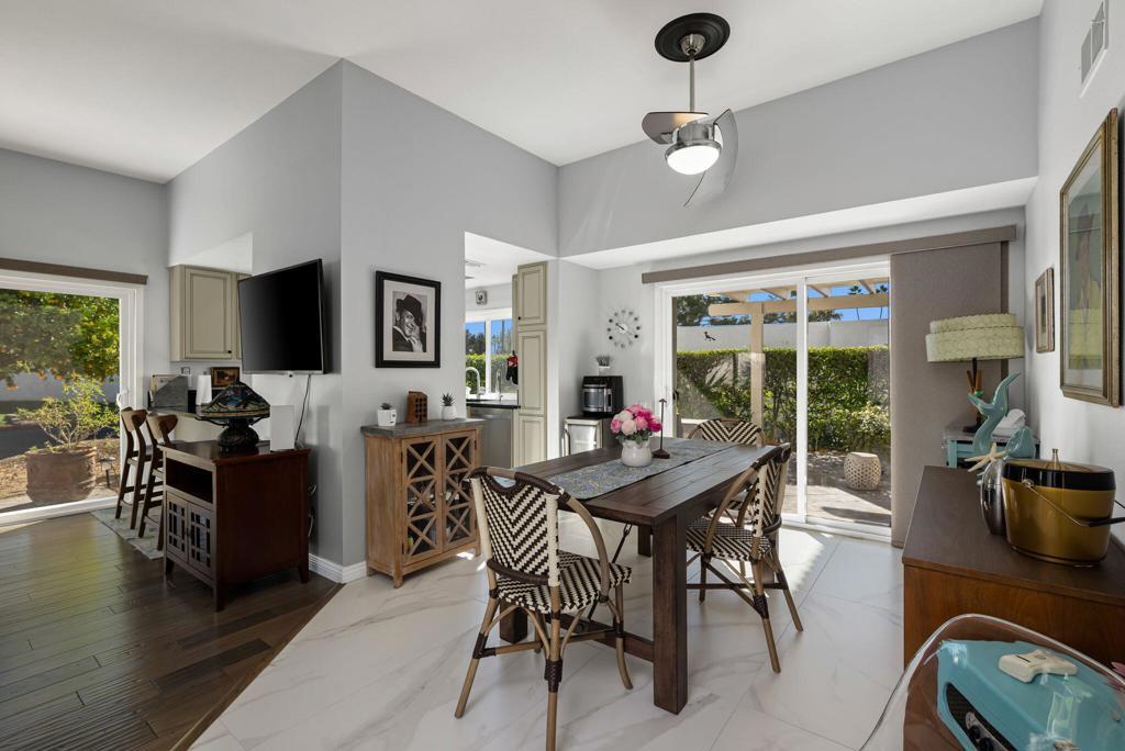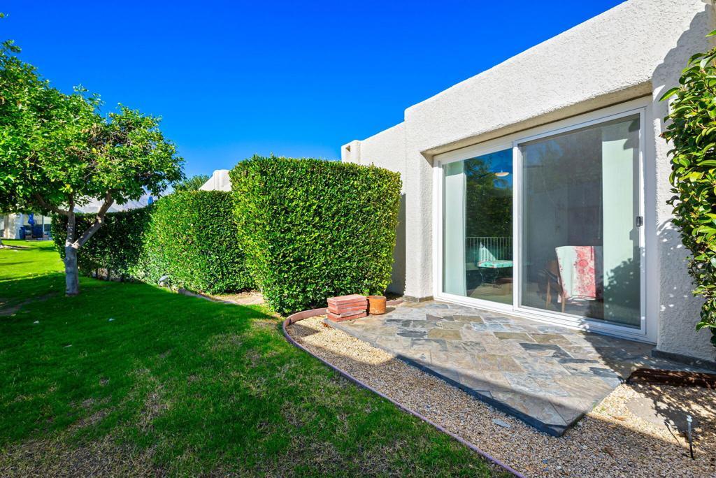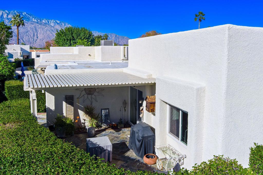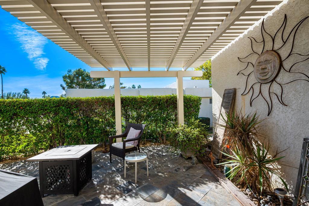 Experience refined desert living in this sophisticated residence within The Fairways, a premier gated enclave in Palm Springs. Spanning 1,168 square feet, this two-bedroom, two-bathroom home seamlessly blends interior comfort with the quintessential outdoor lifestyle of the Coachella Valley. The thoughtfully designed floor plan bathes the interior in natural light. An expansive living and dining area serves as the heart of the home, offering views of the surrounding mountains and manicured greenery. These views extend effortlessly to a private, oversized patio, perfect for al fresco entertaining. Positioned on a desirable corner lot, the property includes a detached one-car garage and an attached carport, providing ample space for a second vehicle or a golf cart. The primary suite offers a spacious retreat with an ensuite bath, while the secondary guest bedroom is positioned for maximum privacy. Convenience is further enhanced by a washer & dryer in the garage. You will enjoy access to 8 heated pools, pickleball courts, tennis courts, and ping pong. Golf is located directly across at Tahquitz Creek Golf Resort, featuring two championship 18-hole courses and a full driving range. Just minutes from the dining and boutiques of Downtown Palm Springs and steps away from the CV Link for hiking, cycling, and low-speed electric vehicle transit.