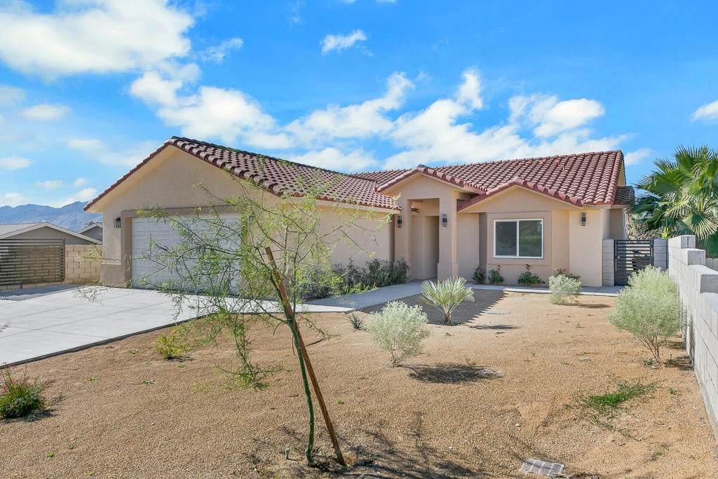 Welcome to this newly constructed home completed in 2025, featuring four bedrooms and three full baths. This charming property includes a two-car garage, a wide driveway, and a low-maintenance desert landscape in the front. The backyard is a blank slate with plenty of space to add a pool or ADU, and you'll enjoy beautiful panoramic mountain views from the backyard.One of the standout features is the fully paid-off solar system, offering you energy savings and sustainability from day one. Best of all, this home is in a non-HOA community, so you have no extra fees or restrictions.If you're looking for a comfortable, family-friendly home with modern amenities and no HOA, this is the perfect spot for you!